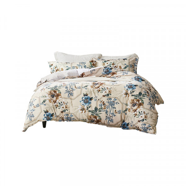 (巨邦佑)BJ+富安娜纯棉四件套锦绣流莲 100%纯棉 透气舒爽温暖睡眠鲜活印染