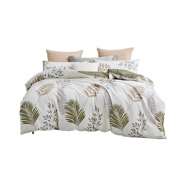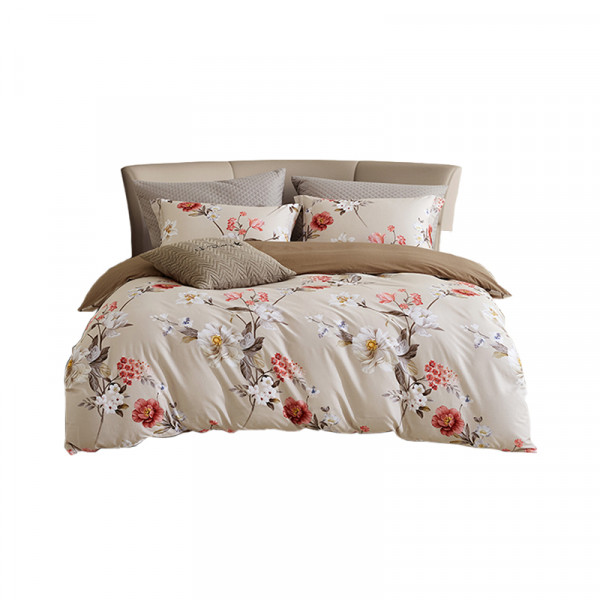 (超运·禾贸)富安娜纯棉四件套-花意轻尘(被套203*229cm床单230*250cm枕套74*48cm)白咖配花色 纯棉四件套