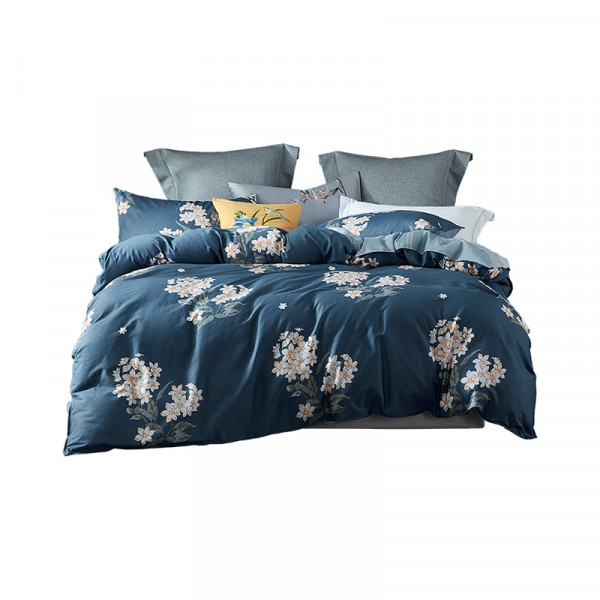 (超运·禾贸)富安娜纯棉四件套-人间芳菲(被套203*229cm床单230*250cm枕套74*48cm)蓝配花色 纯棉四件套