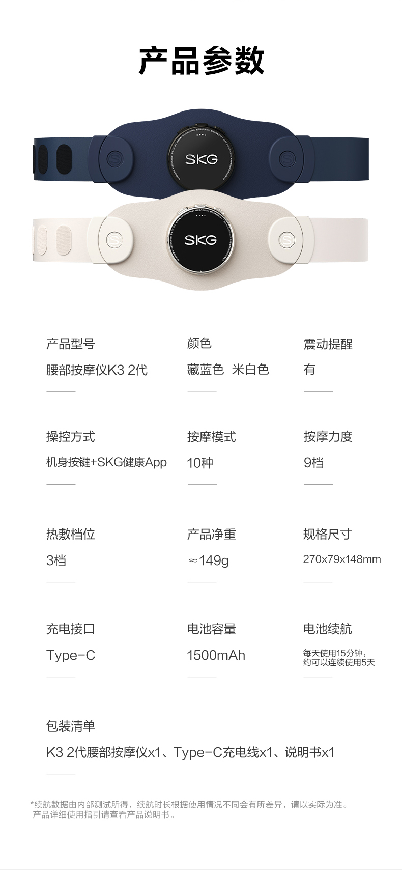 商品名称:(巨邦佑)T+SKG腰部舒缓放松佩戴隐形按摩仪K3系列2代时尚款藏蓝色