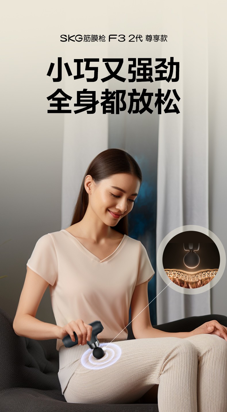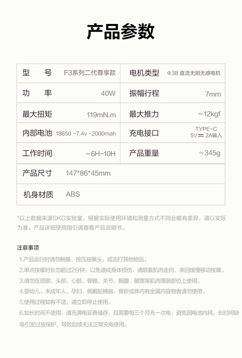 商品名称:(巨邦佑)T+SKG筋膜枪F3-2尊享款级健身运动腰腿肩颈肌肉按摩放松仪礼物老人家用按摩器 F3-2 尊享款 筋膜枪