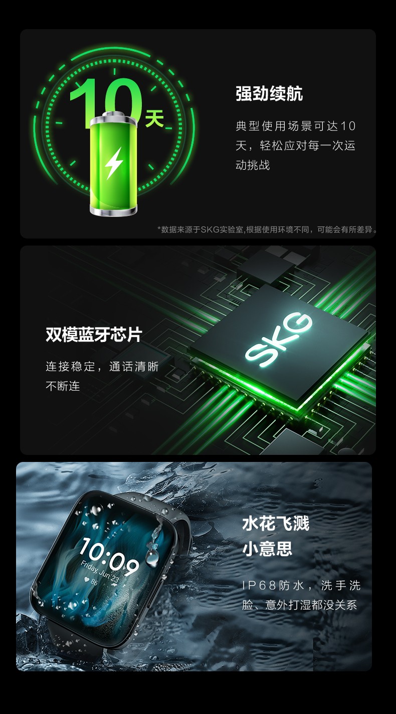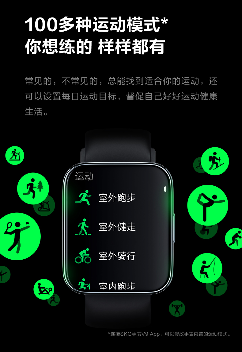 商品名称:(巨邦佑)T+SKG 智能手表V9系列1代豪华款 触摸屏 心率血氧睡眠压力健康跟踪 黑