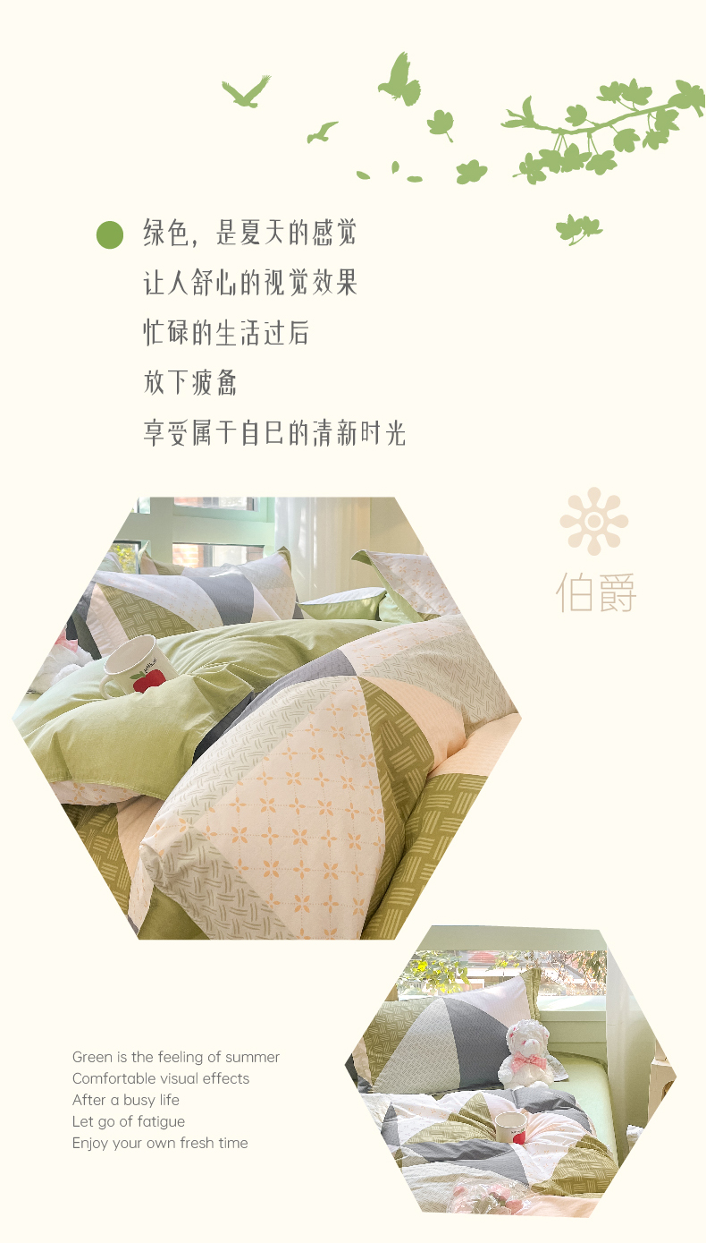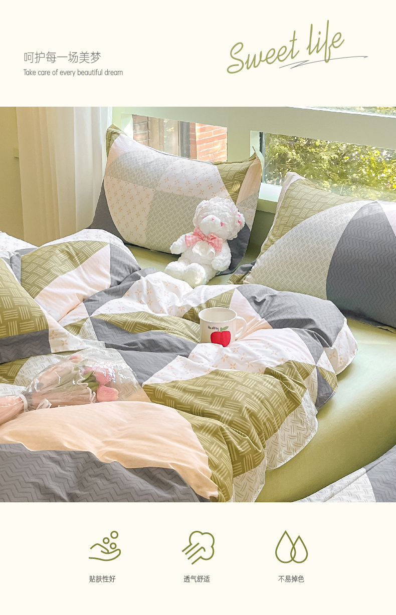 (中合誉品)百丽安娜全棉经典四件套-伯爵200*230 (1.5-1.8床适用)四件套床单式