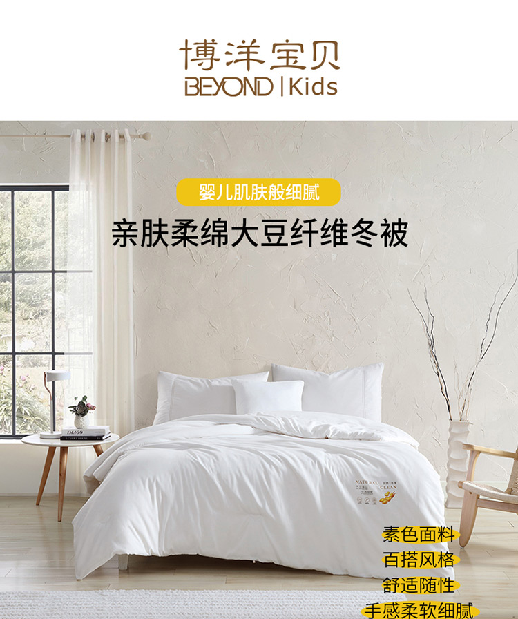 商品名称:(中合誉品)博洋(BEYOND)博洋家纺亲肤柔绵大豆纤维四季被春秋被四季通用春季被芯—沪 深睡系列-亲肤柔绵大豆纤维冬被 200*230cm