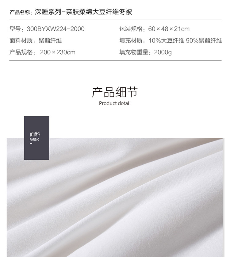 (中合誉品)博洋(BEYOND)博洋家纺亲肤柔绵大豆纤维四季被春秋被四季通用春季被芯—沪 深睡系列-亲肤柔绵大豆纤维冬被 200*230cm