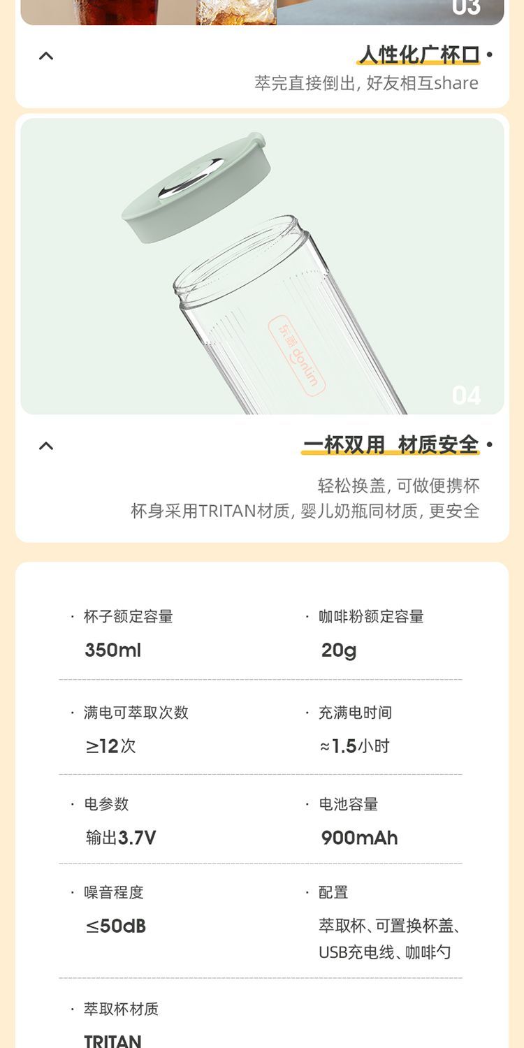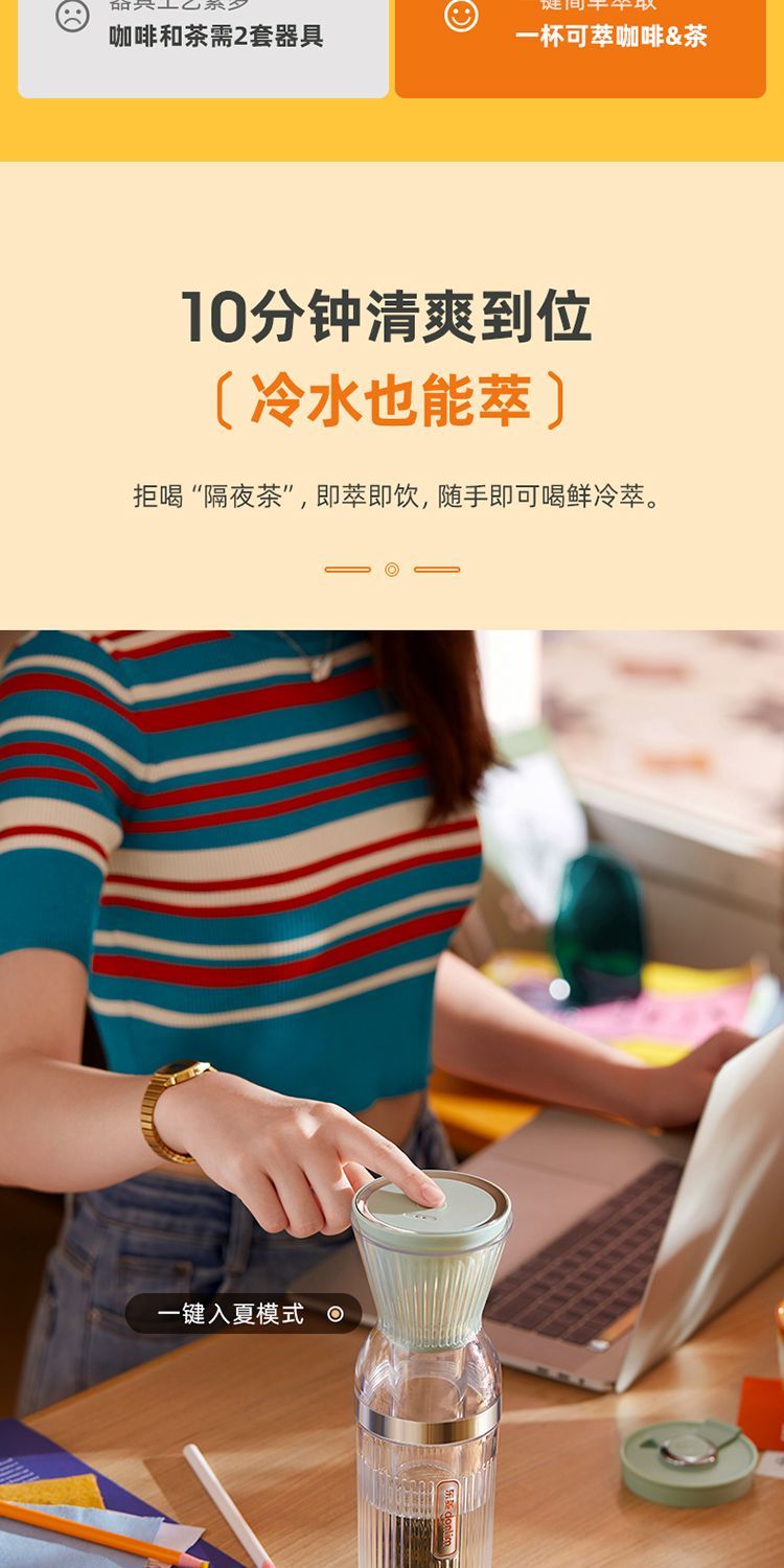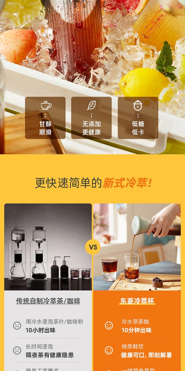 商品名称:(巨邦佑)T+东菱乐萃杯冷萃咖啡壶无线便携冷泡萃取杯咖啡花茶解暑DL-9003(单杯))