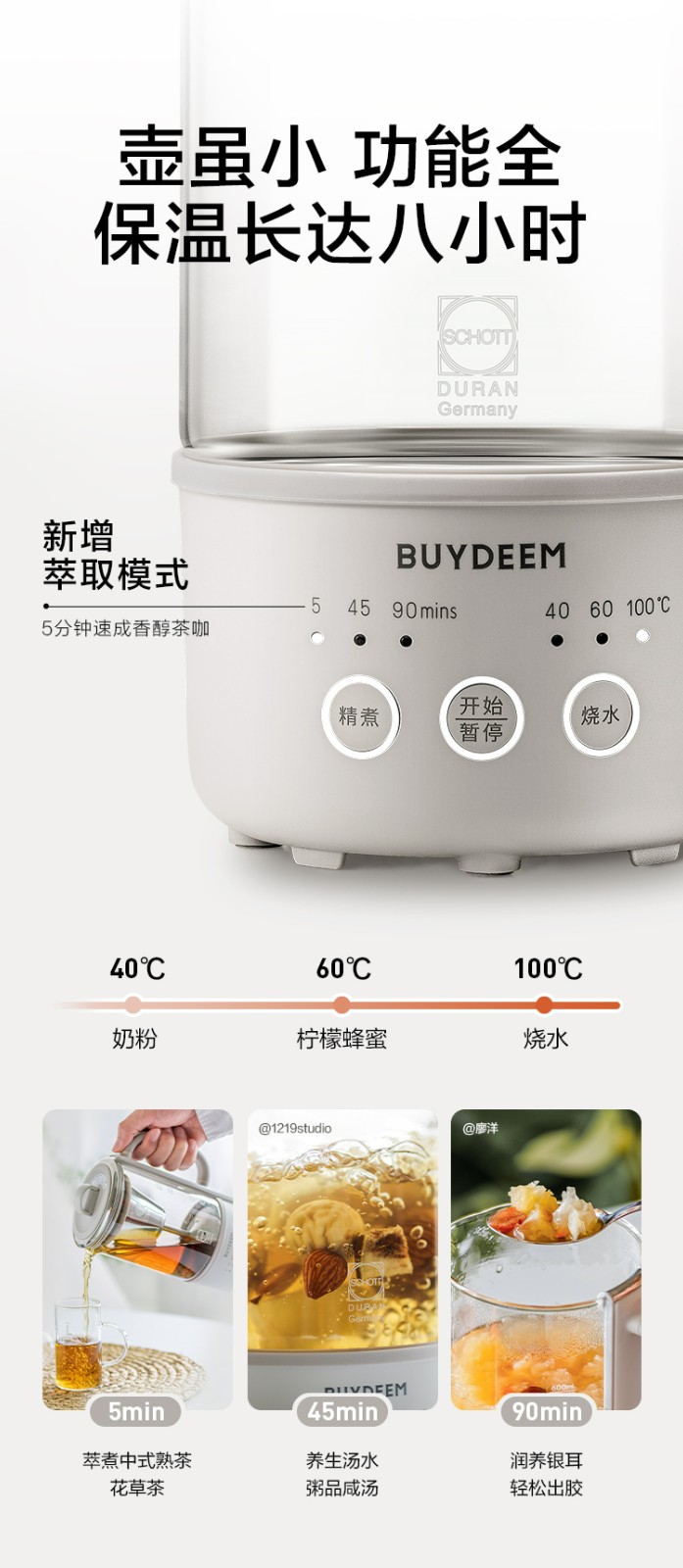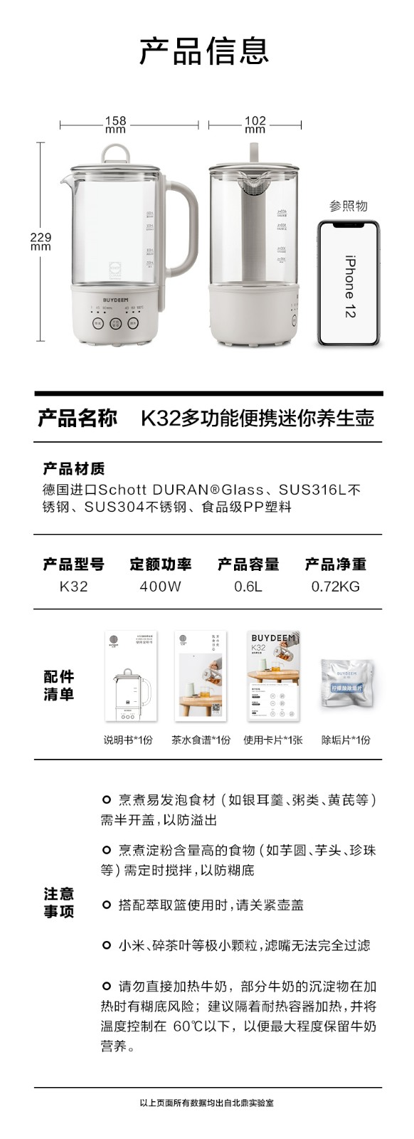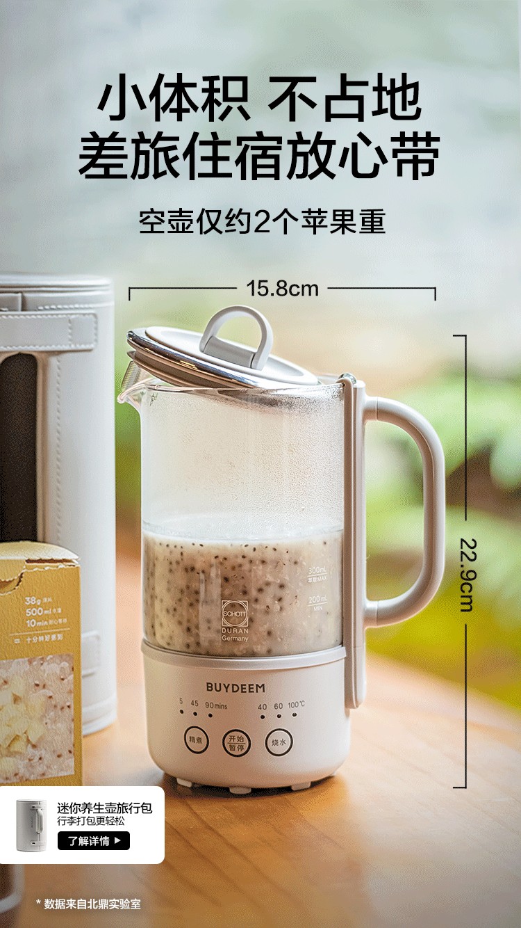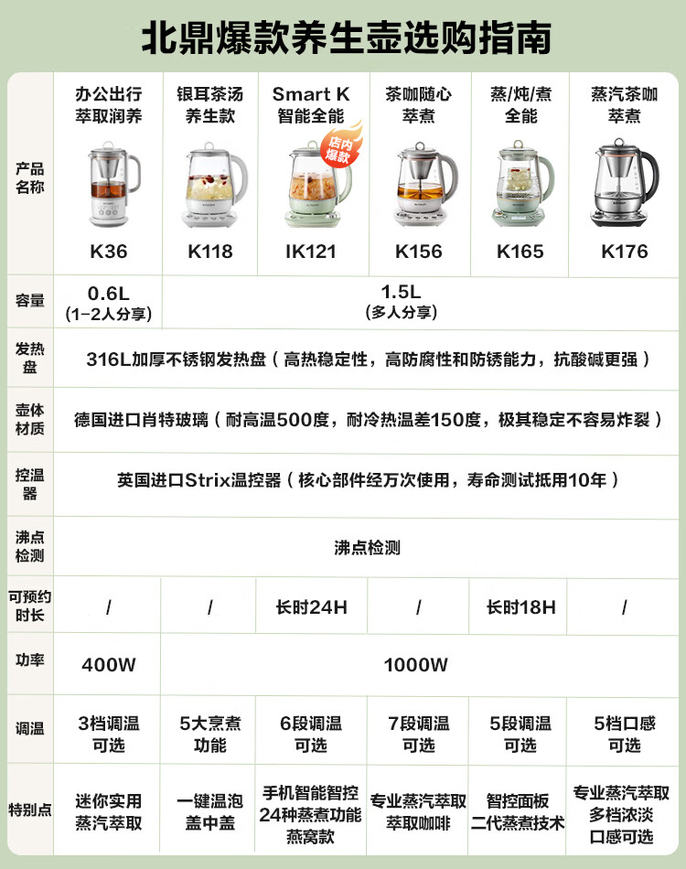 商品名称:(巨邦佑)R+北鼎多功能养生壶k32 0.6L 家用保温壶 便携煮茶器 全玻璃恒温烧水壶 一体式小型花茶咖萃取壶 (下单前备注颜色或联系客服)