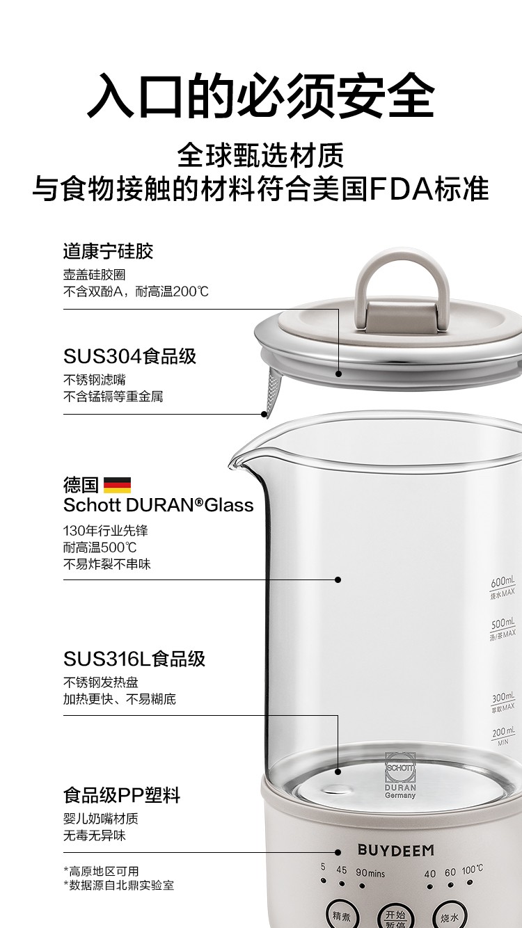 (巨邦佑)R+北鼎多功能养生壶k32 0.6L 家用保温壶 便携煮茶器 全玻璃恒温烧水壶 一体式小型花茶咖萃取壶 (下单前备注颜色或联系客服)