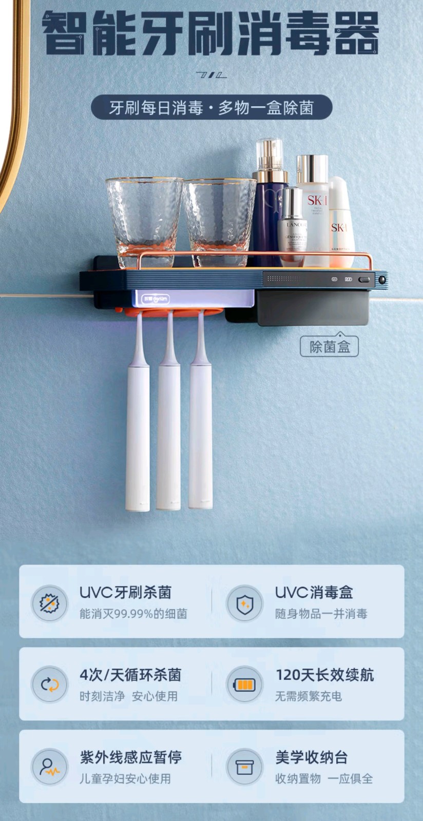商品名称:东菱(Donlim) 牙刷架消毒电动牙刷置物架紫外线杀菌灯珠牙刷消毒器智能感应 棉云白