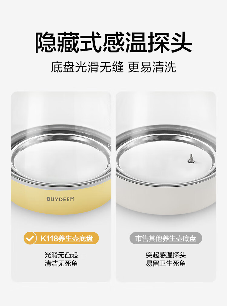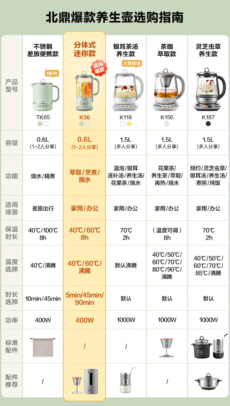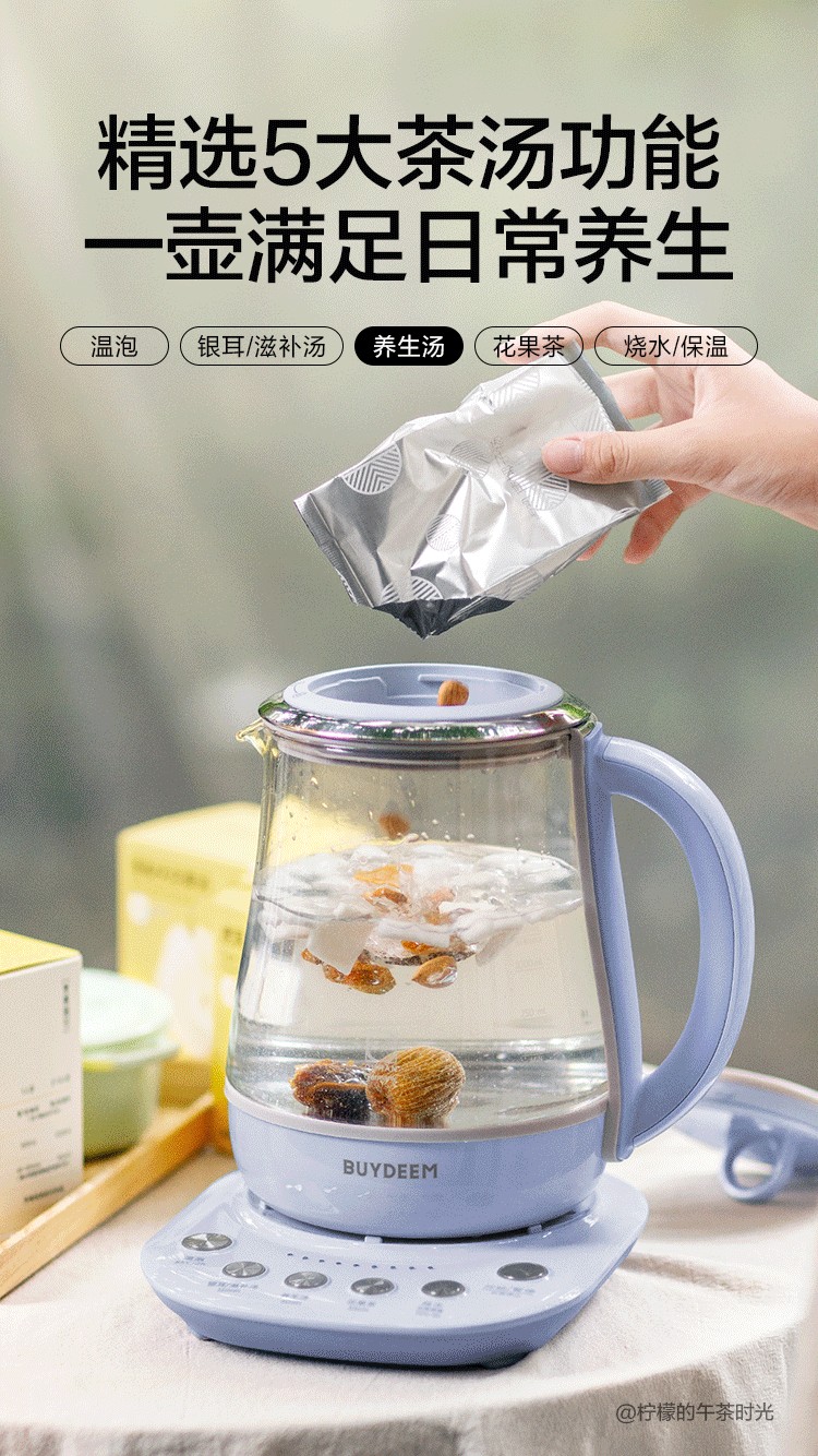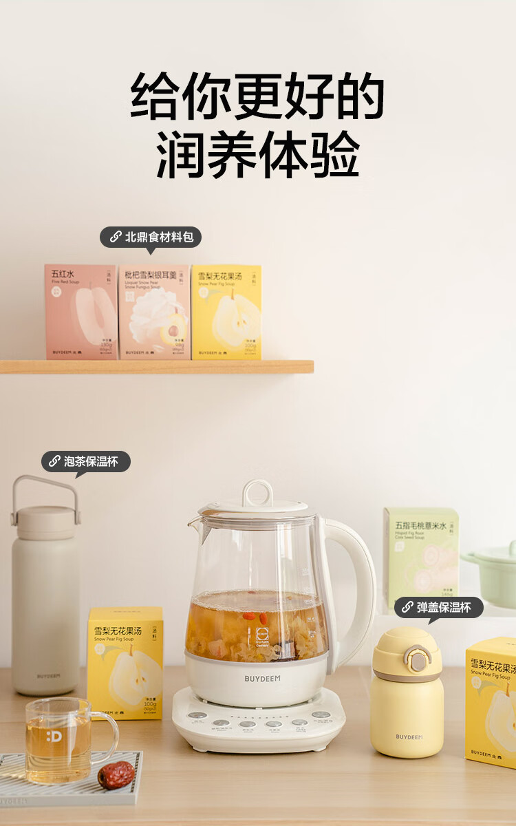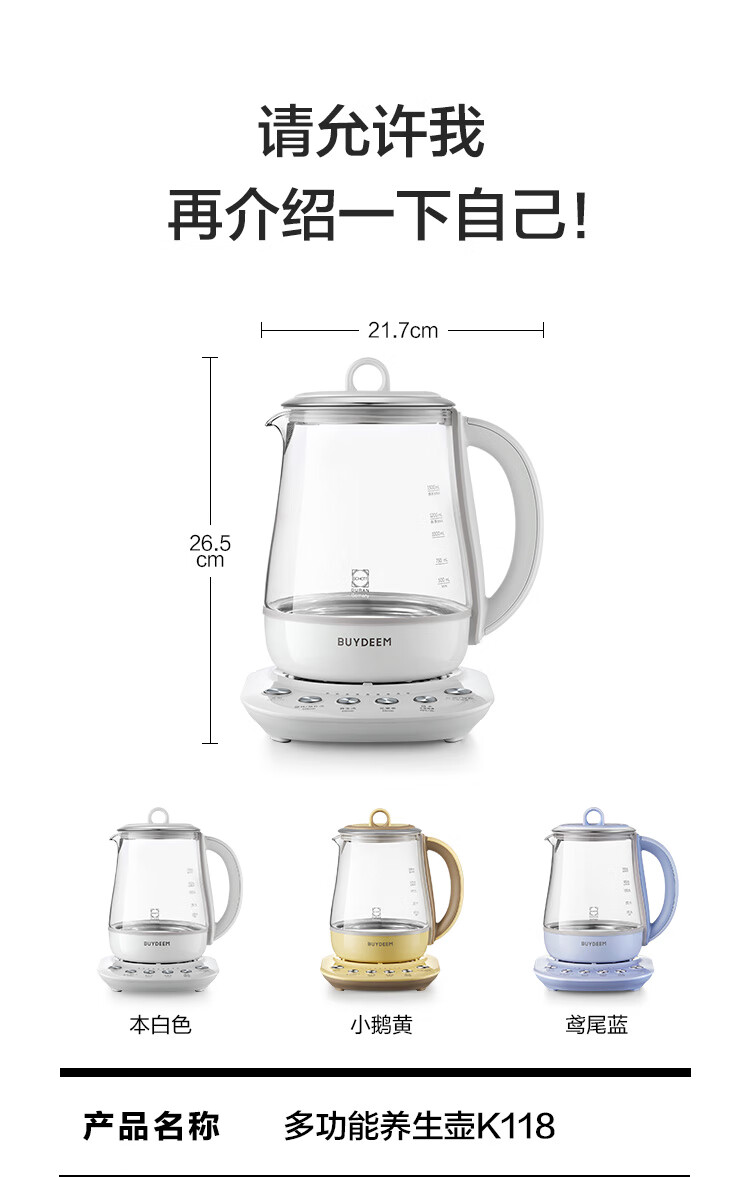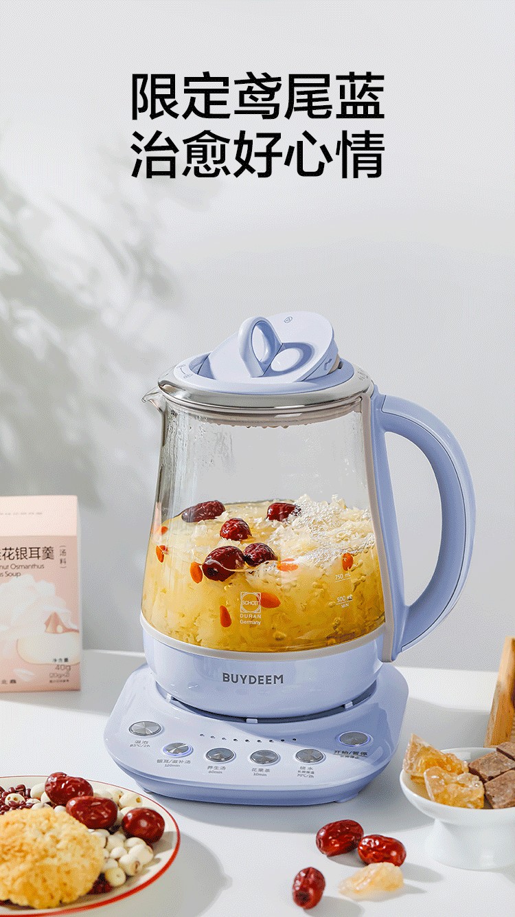 商品名称:(巨邦佑)R+北鼎多功能养生壶K118 1.5L 全自动静音温泡银耳壶 全玻璃恒温壶家用养生花茶壶 (下单前备注颜色或联系客服)