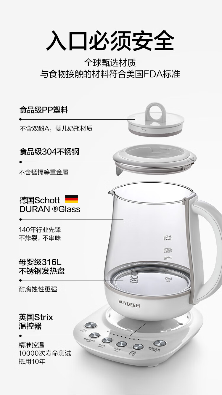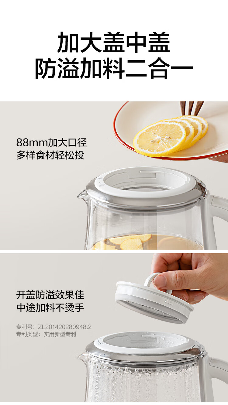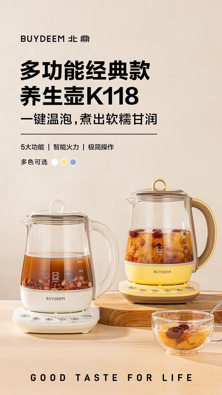 (巨邦佑)R+北鼎多功能养生壶K118 1.5L 全自动静音温泡银耳壶 全玻璃恒温壶家用养生花茶壶 (下单前备注颜色或联系客服)