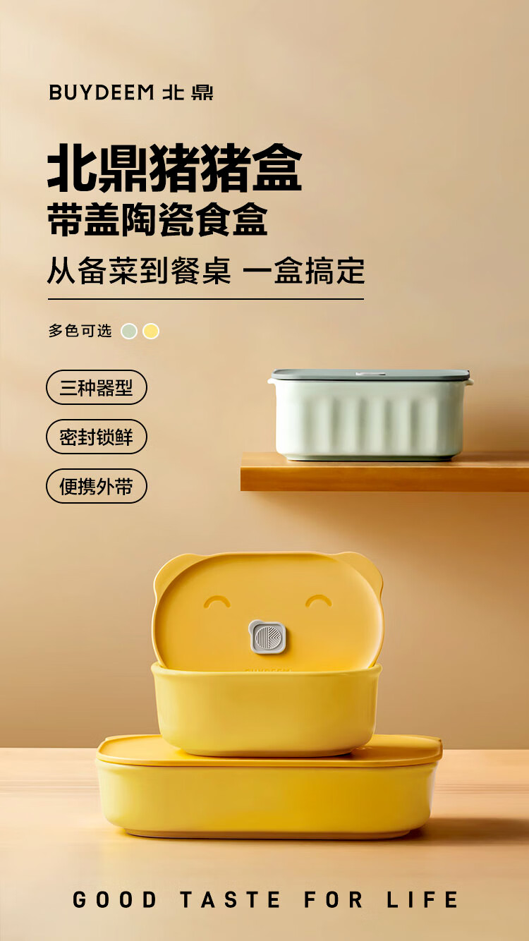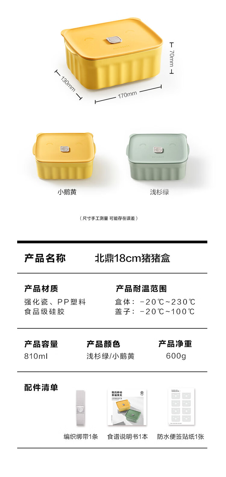 商品名称:(巨邦佑)R+北鼎(Buydeem)猪猪盒18cm 810ml陶瓷蒸碗饭盒便携便当盒蒸盒上班族学生餐盒微波炉烤箱通用 (下单前备注颜色或联系客服)
