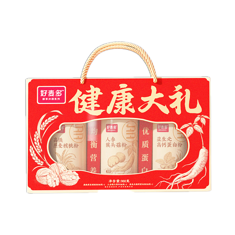 (巨邦佑)BH+好麦多燕麦人参猴头菇核桃粉益生元高钙 蛋白粉健康礼盒 健康大礼盒900g*