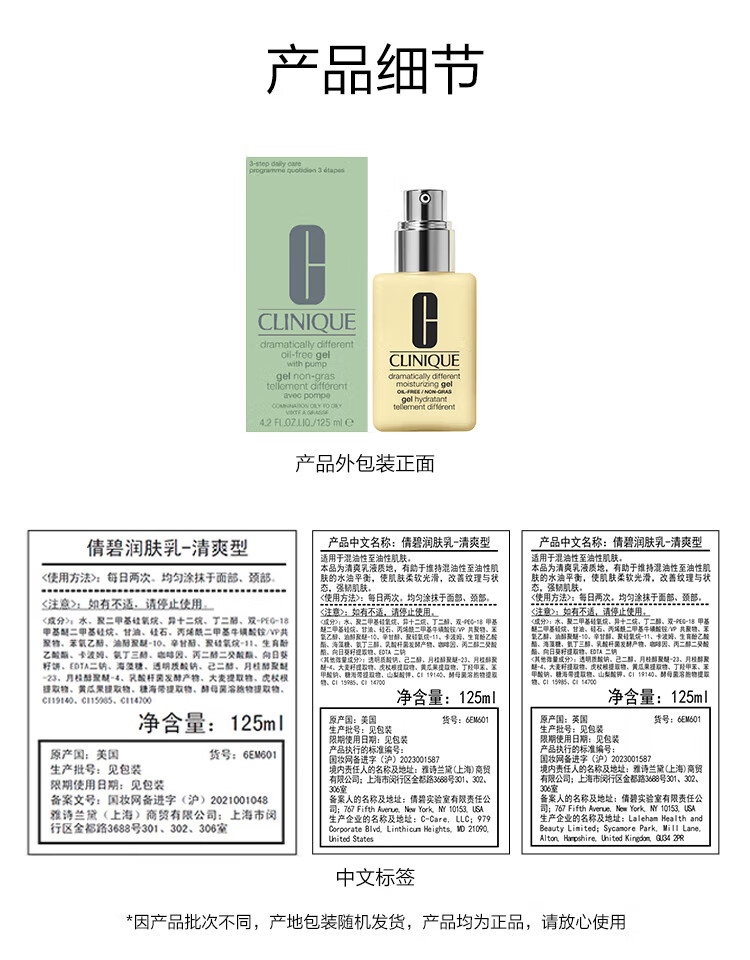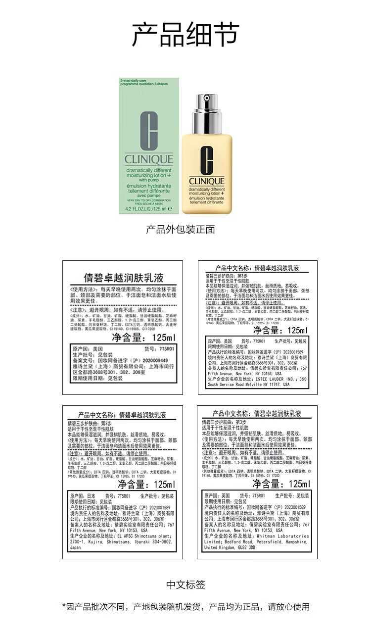 商品名称:(巨邦佑)BJ+倩碧卓越润肤乳125ml 有油滋润型无油清爽型补水保湿