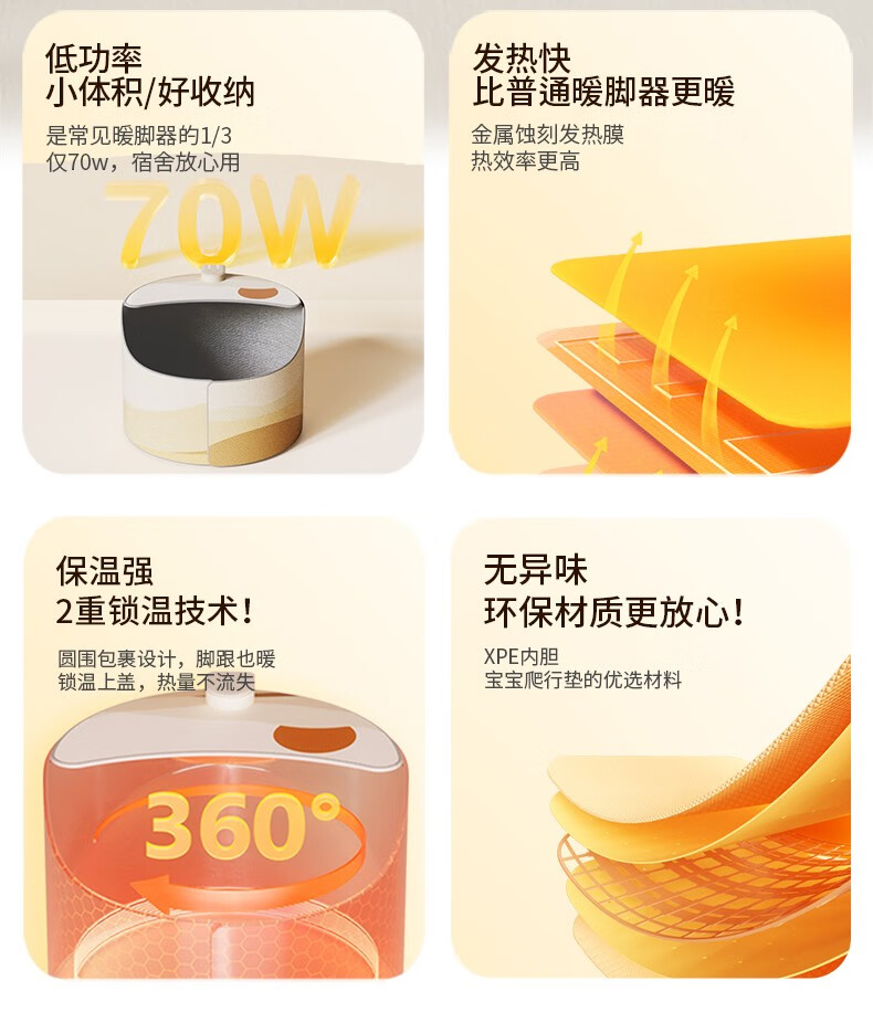 商品名称:(巨邦佑)BJ+向物围圆暖脚宝-暖围围mini DSHJ-S-2313 暖脚神器桌下取暖器冬天暖脚宝