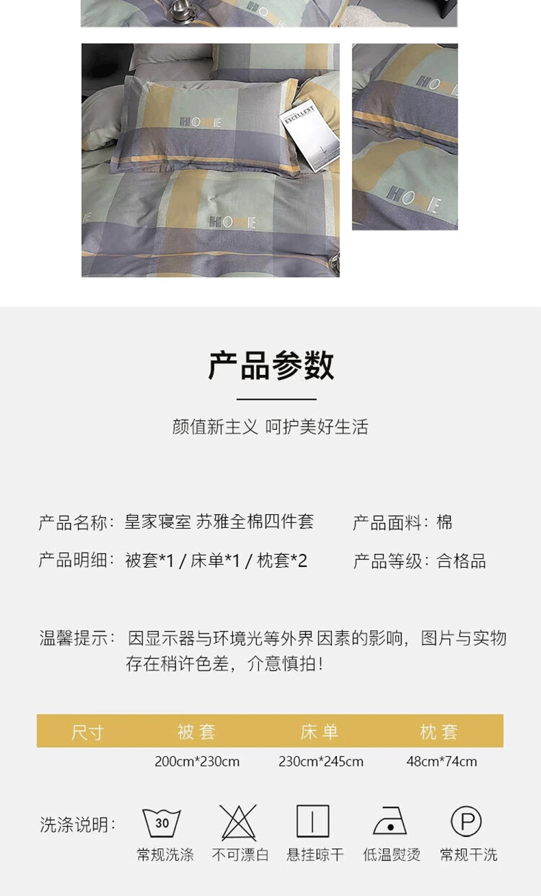 商品名称:(巨邦佑)BJ+皇家寝室苏雅全棉四件套 HJQS-TJ4027 被套200*230cm 简约四件套