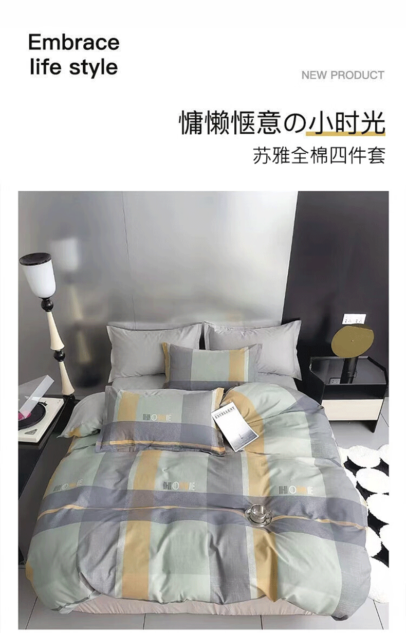 (巨邦佑)BJ+皇家寝室苏雅全棉四件套 HJQS-TJ4027 被套200*230cm 简约四件套