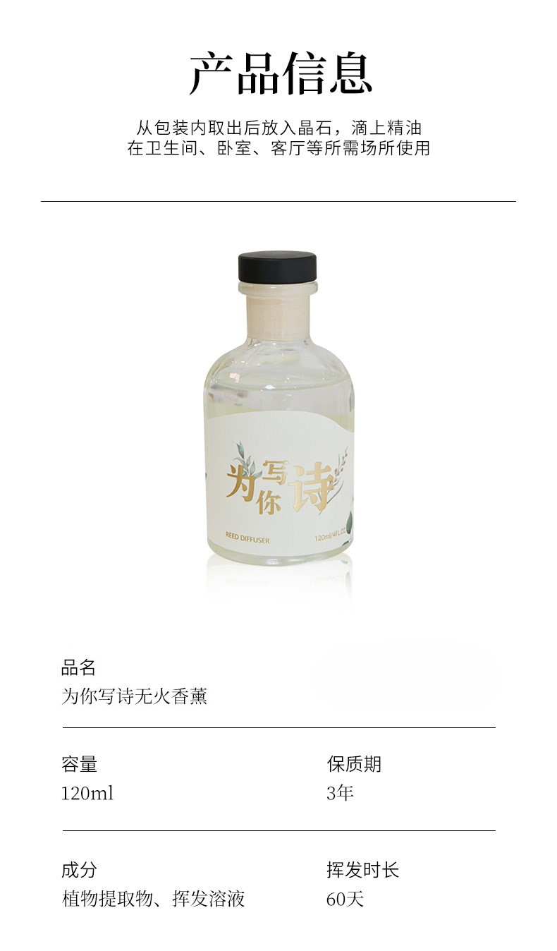 (巨邦佑)BJ+FANNYAROMA 为你写诗无火香薰120ml 家用室内香氛空气清新