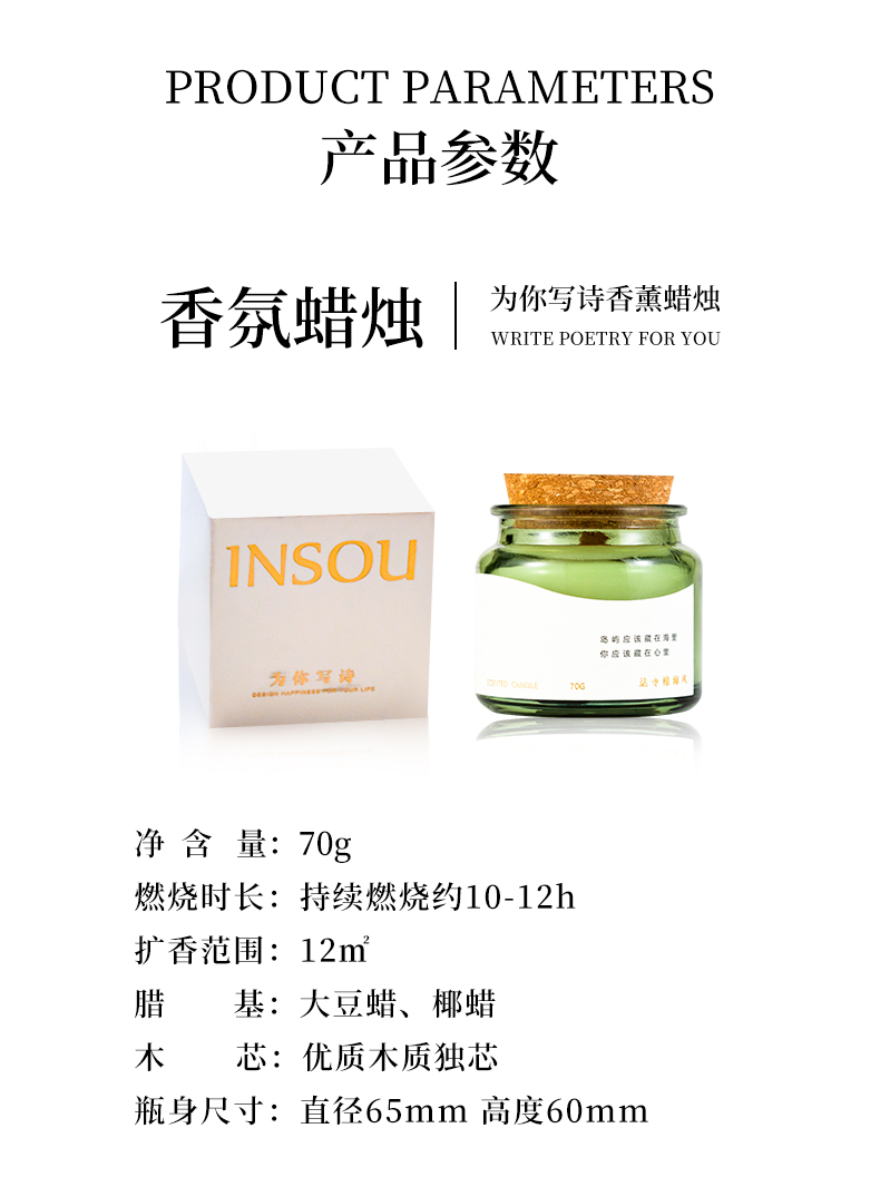 商品名称:(巨邦佑)BJ+FANNYAROMA 为你写诗香薰蜡烛70g 家用室内香氛蜡烛香薰高级氛围感