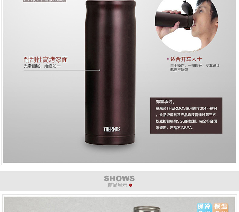 商品名称:(超运·禾贸)THERMOS膳魔师不锈钢真空保温杯JMY-500 6H保温:500cc66度以上咖啡色