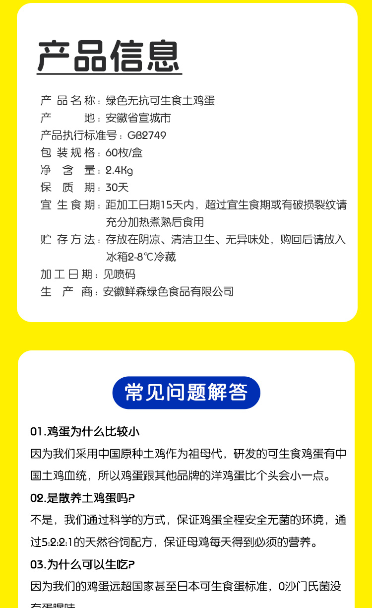 商品名称:(世星阳光) 蛋鲜森绿色无抗可生食土鸡蛋60枚2400g 礼盒装无抗生素无沙门氏菌健康新鲜土鸡蛋