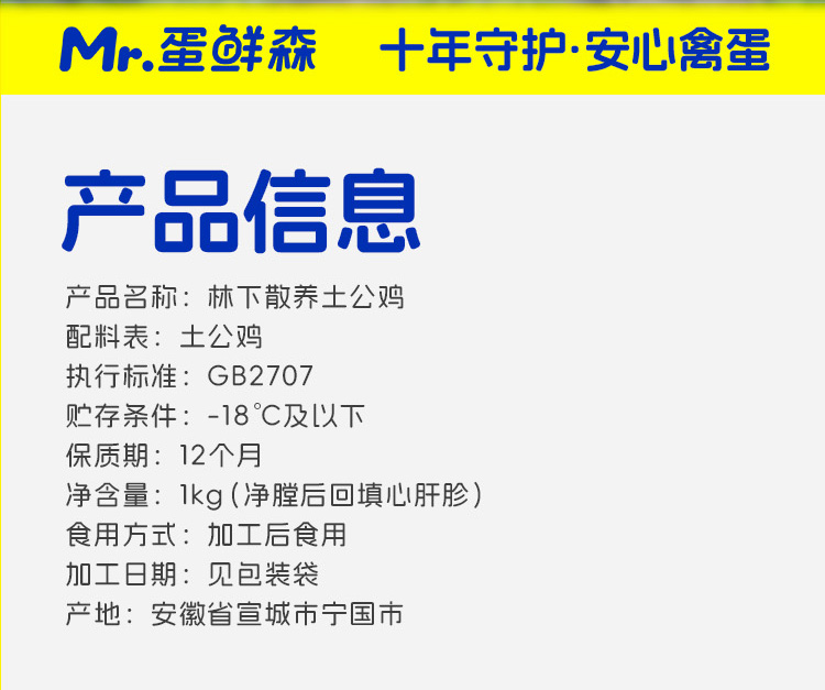 商品名称:(世星阳光) 蛋鲜森 林下散养土公鸡1000g只 散养200天真空净膛 顺丰源头直发 一只装