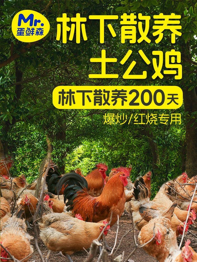 商品名称:(世星阳光) 蛋鲜森 林下散养土公鸡 1000g只 2只装 散养200天真空净膛 顺丰源头直发 一只装