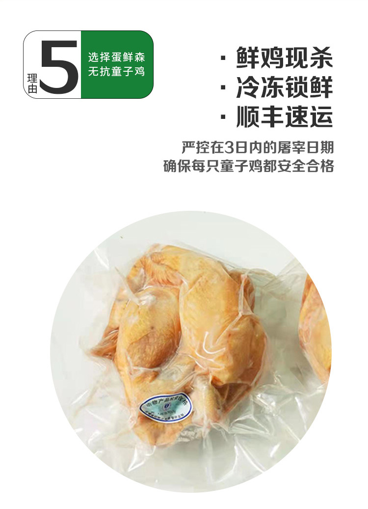 商品名称:(世星阳光) 蛋鲜森徽州童子鸡 900g±50g只 清蒸白切活鸡现杀急冻保鲜整鸡净膛 2只装