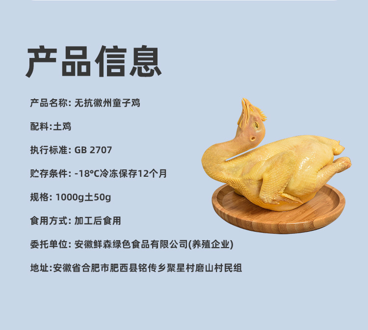 商品名称:(世星阳光) 蛋鲜森徽州童子鸡 1000g±50g只 清蒸白切活鸡现杀急冻保鲜整鸡净膛 2只装