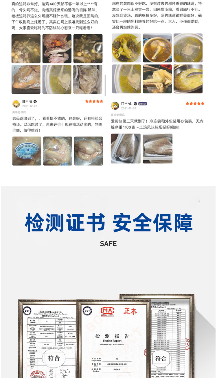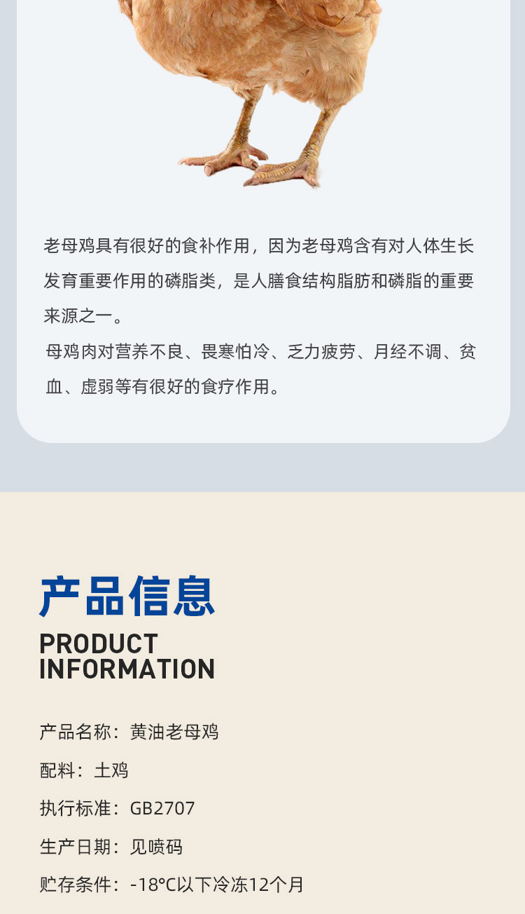 商品名称:(世星阳光) 蛋鲜森400天黄油老母鸡1100g±100g只 (2只装) 煲汤专用活鸡现杀急冻真空保鲜