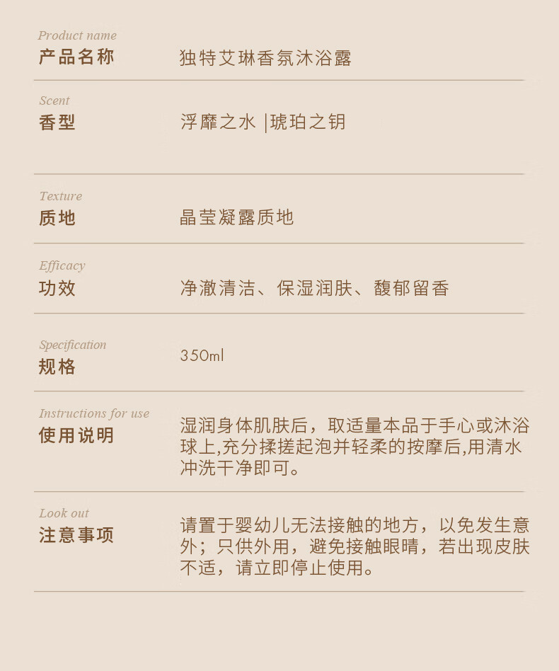 商品名称:(巨邦佑)BJ+独特艾琳香氛沐浴露350ml 保湿持久留香