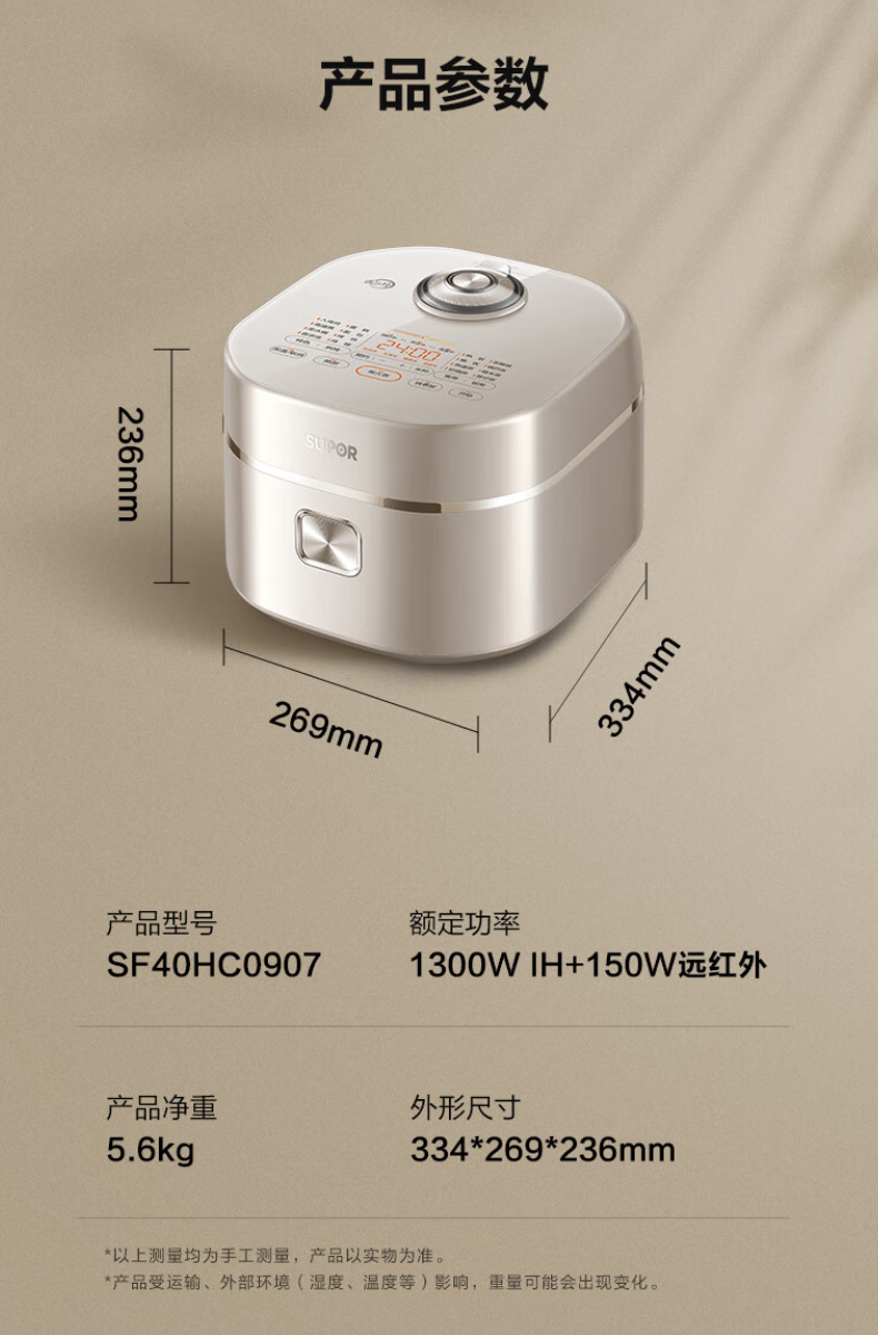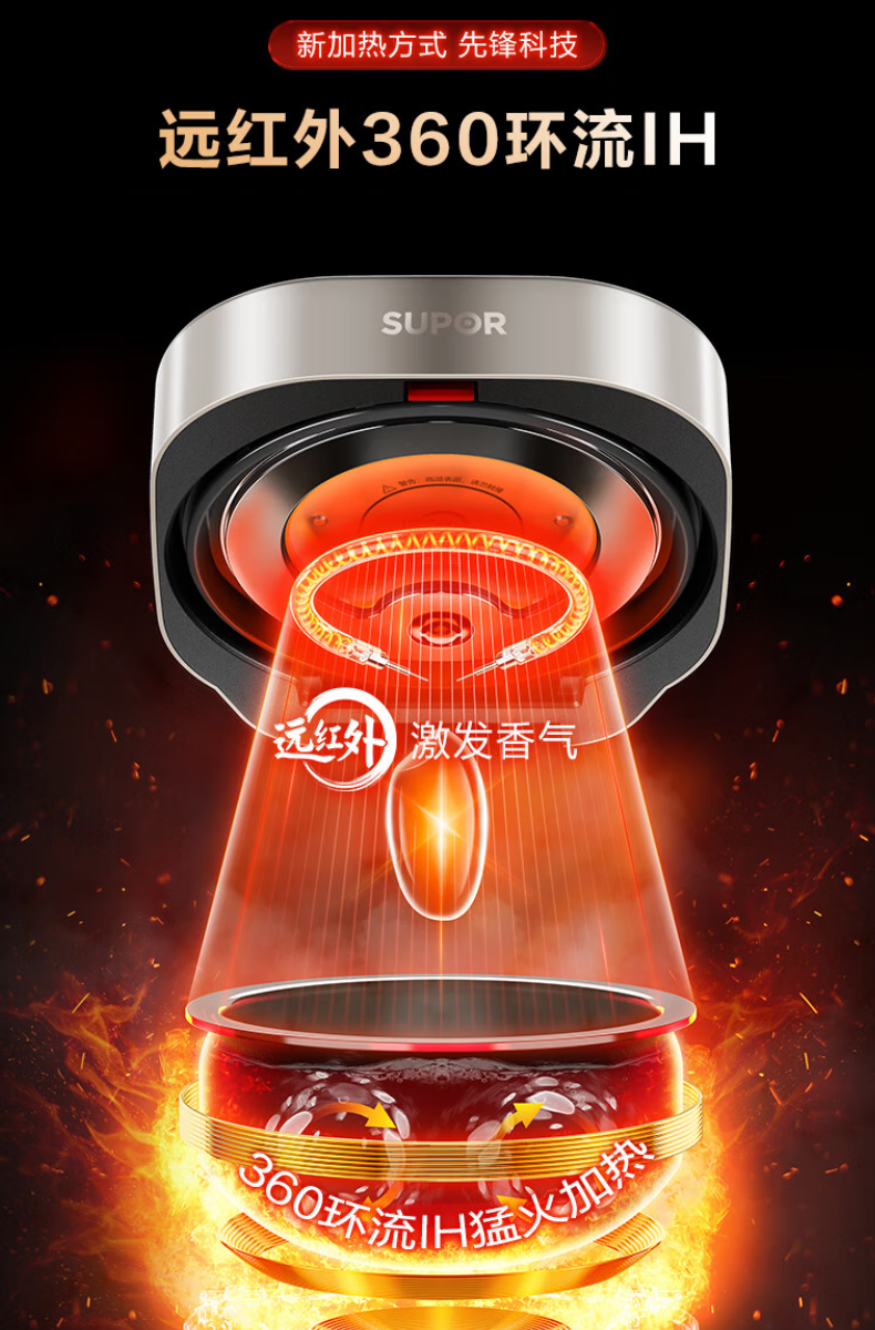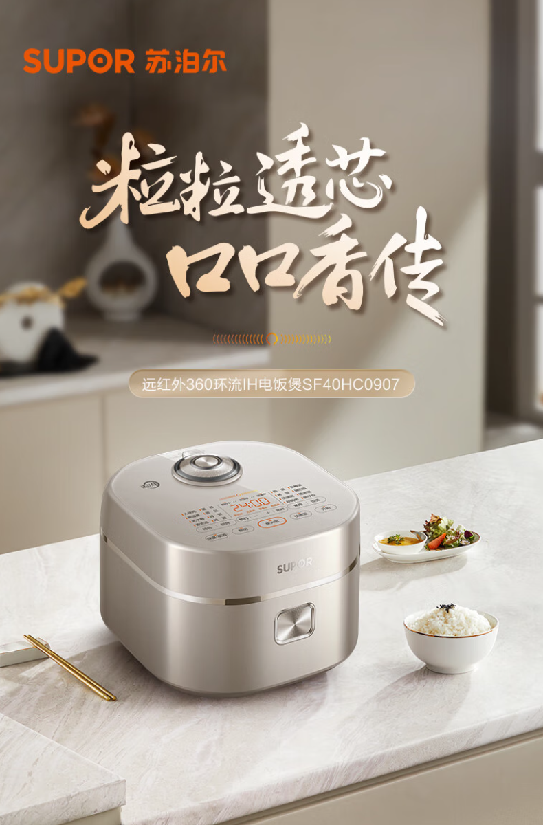 商品名称:(巨邦佑)BH+苏泊尔远红外系列电饭煲4升3-4人本釜内胆360°IH环流加热 柴火饭智能家用多功能电饭锅SF40HC0907