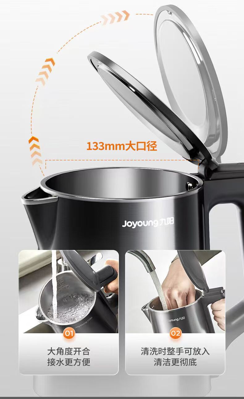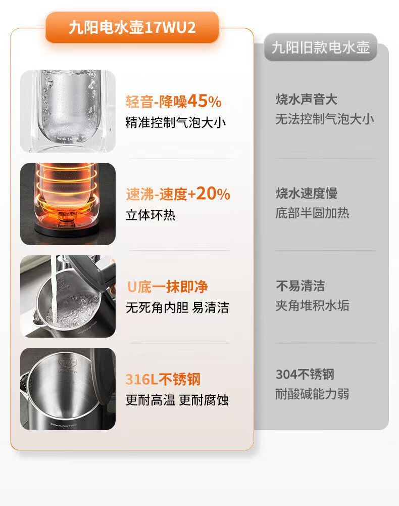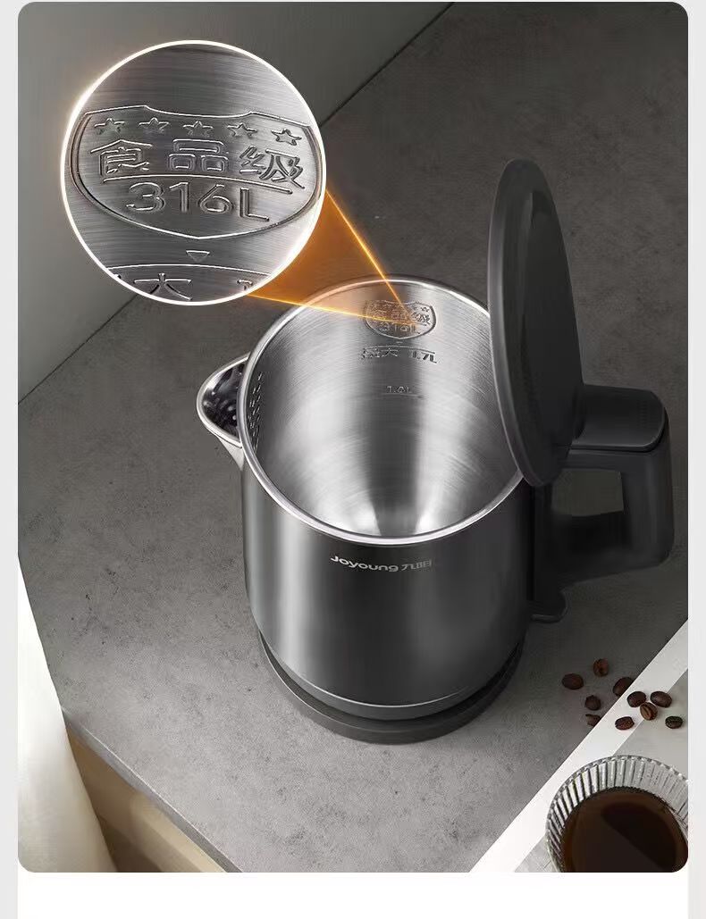 (巨邦佑)T+九阳电热水壶烧水壶大容量 316L无缝内胆 U底轻音速沸电水壶热水壶家用防烫 17WU2 1.7L