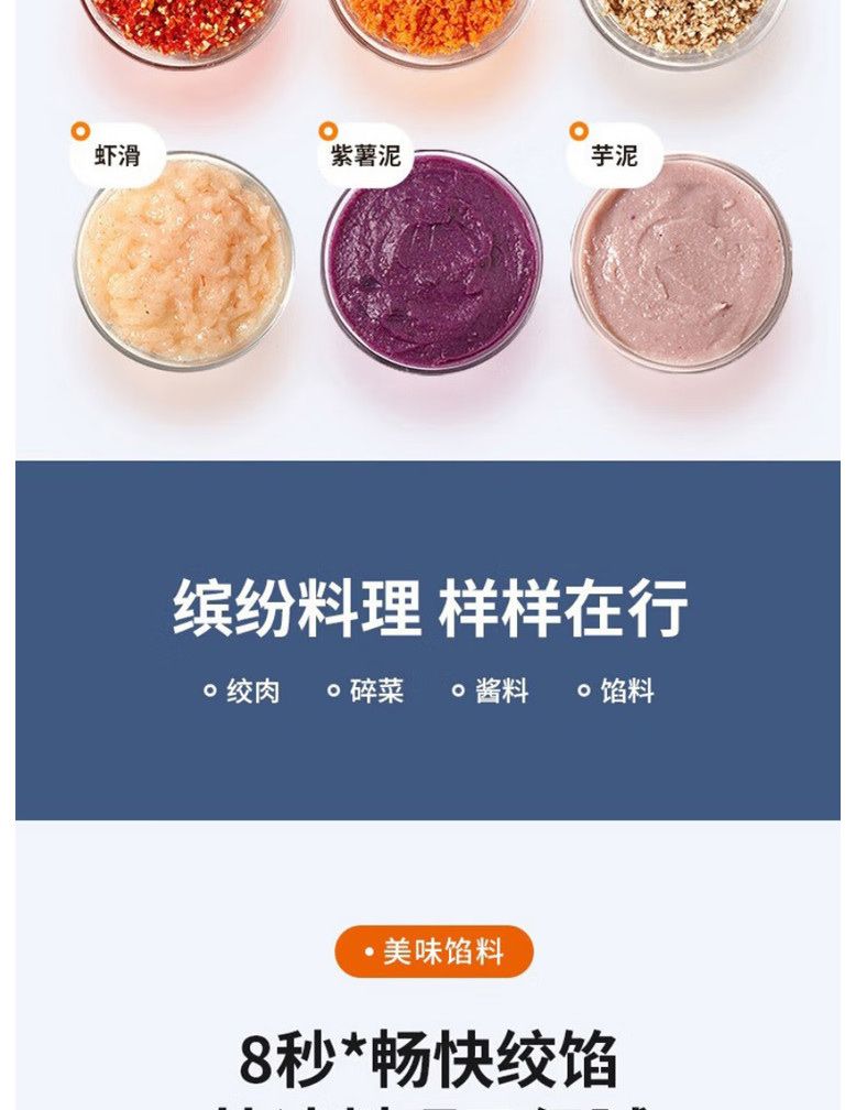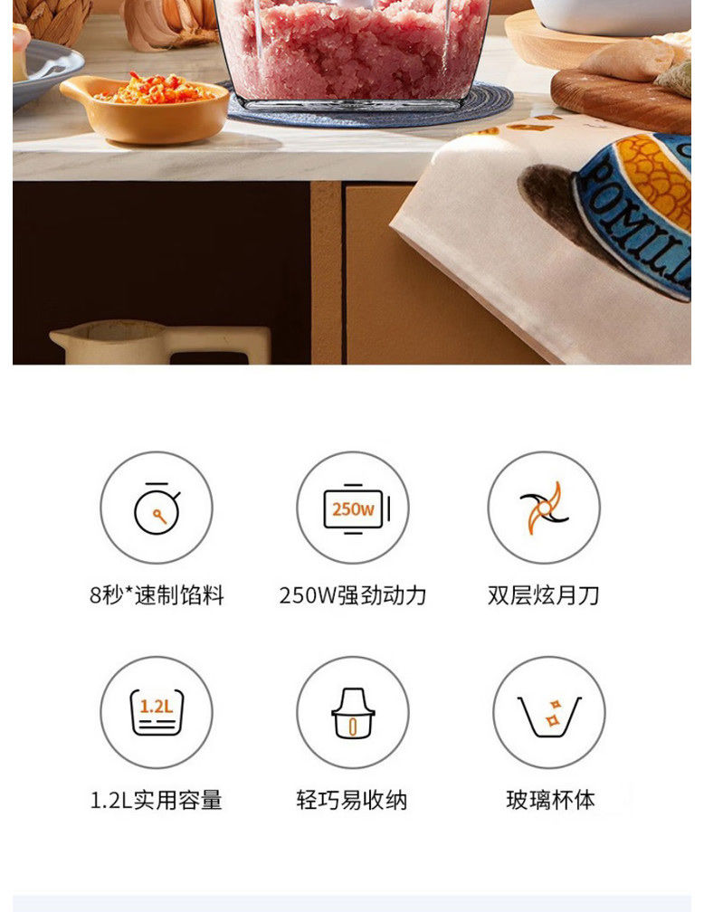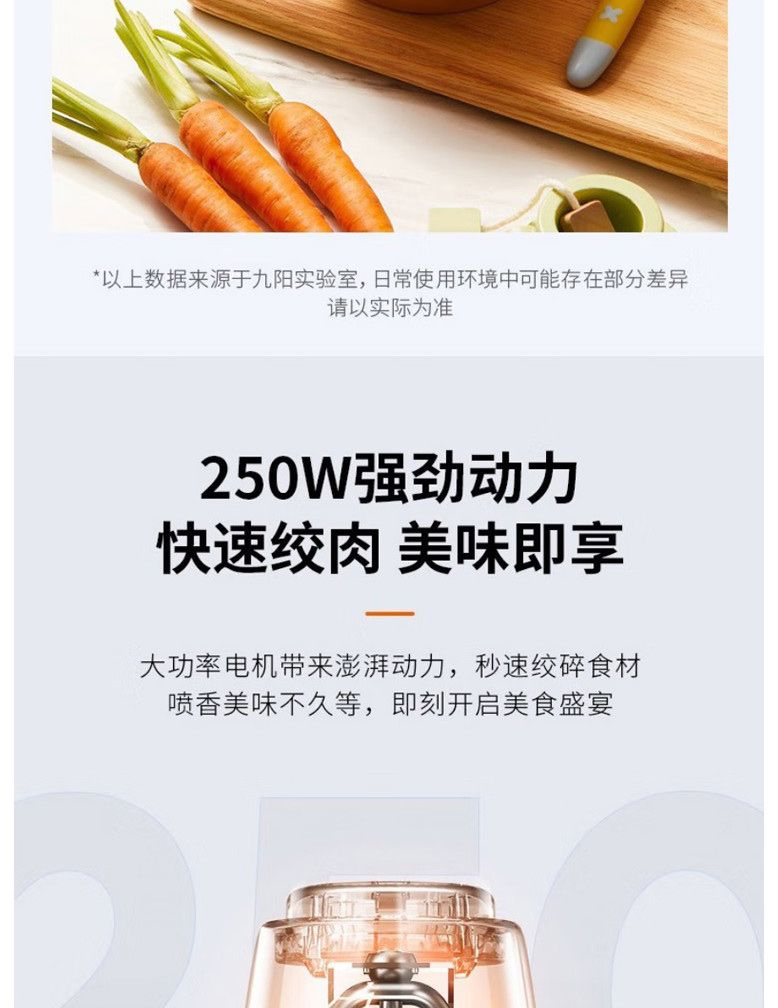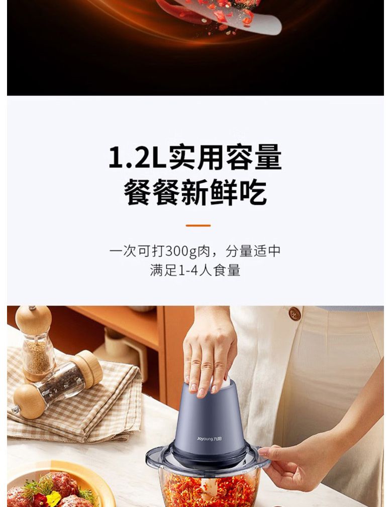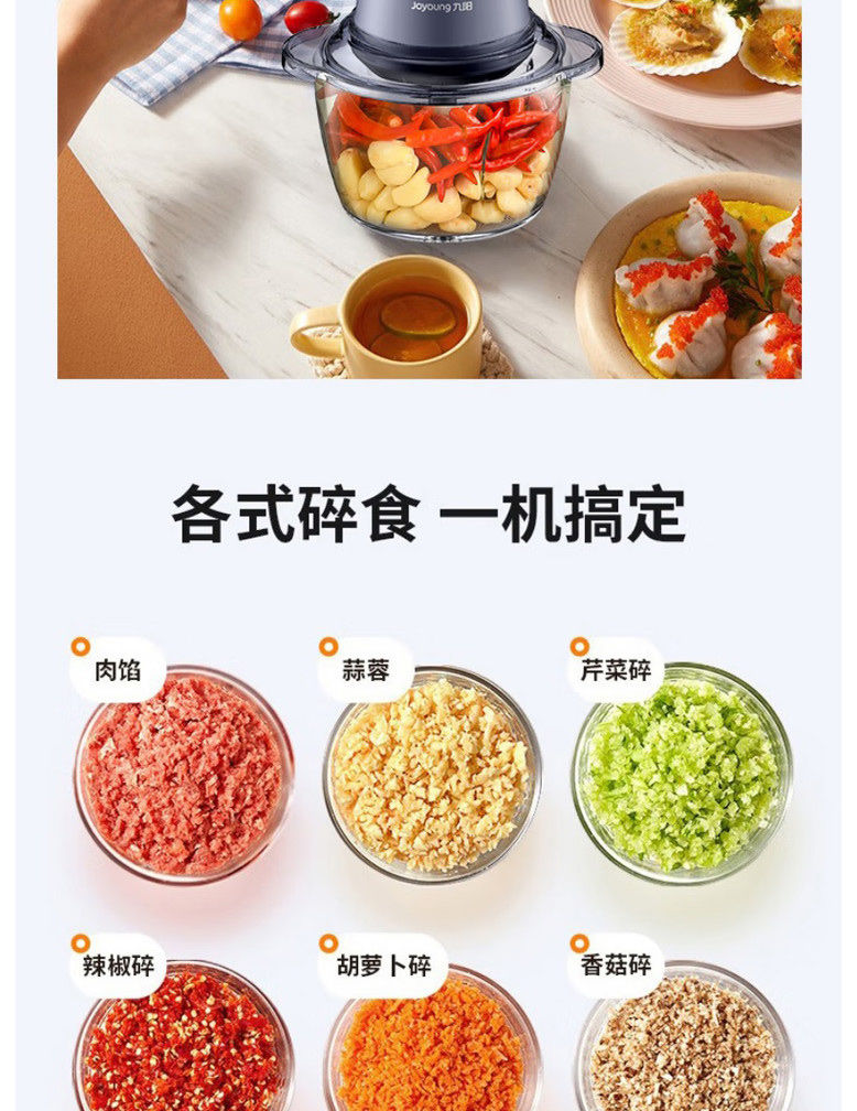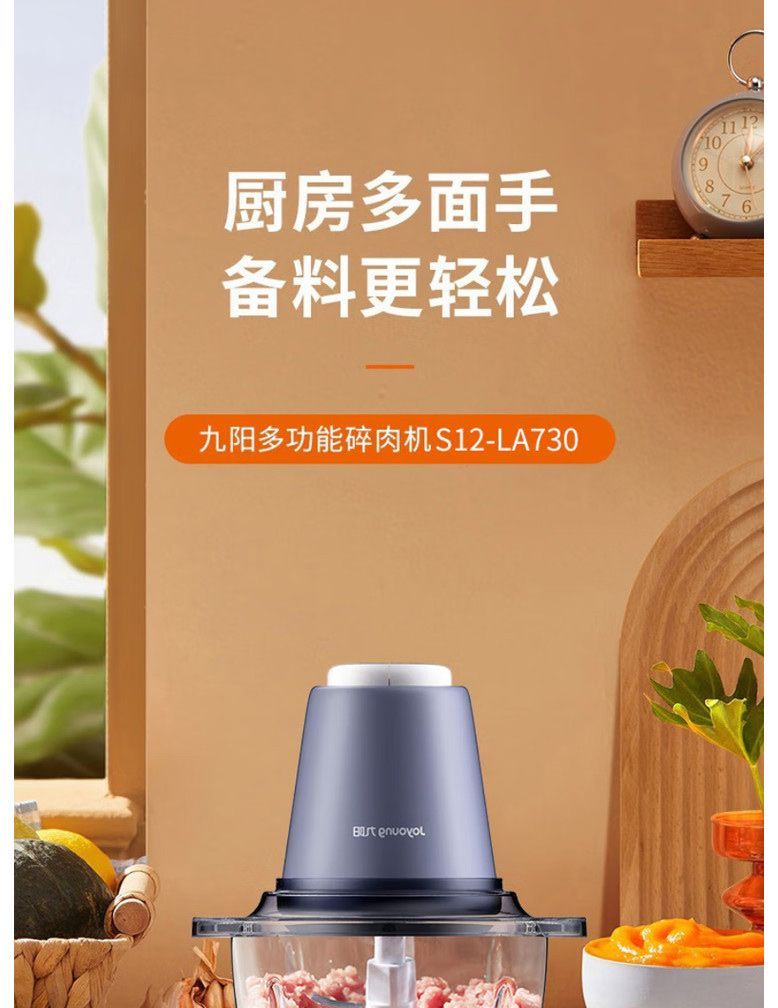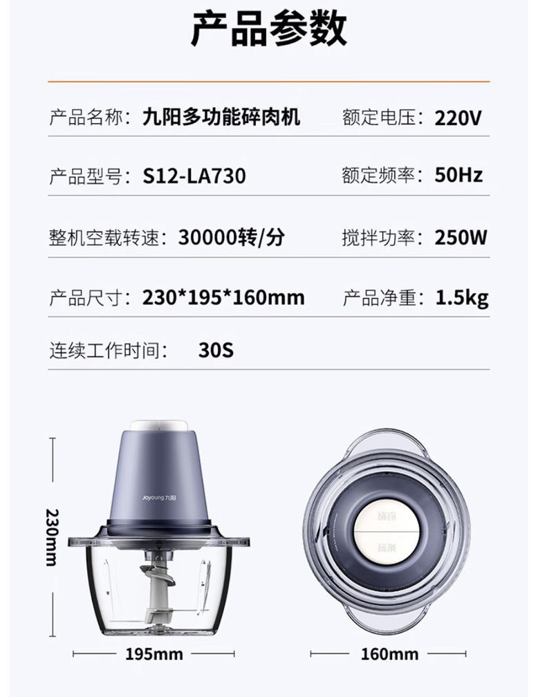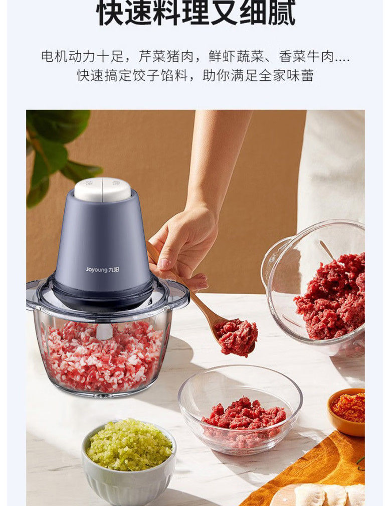 商品名称:(巨邦佑)T+九阳双档绞肉机多功能家用玻璃杯电动料理机搅拌切菜碎肉机LA730 石英蓝250w1.2升