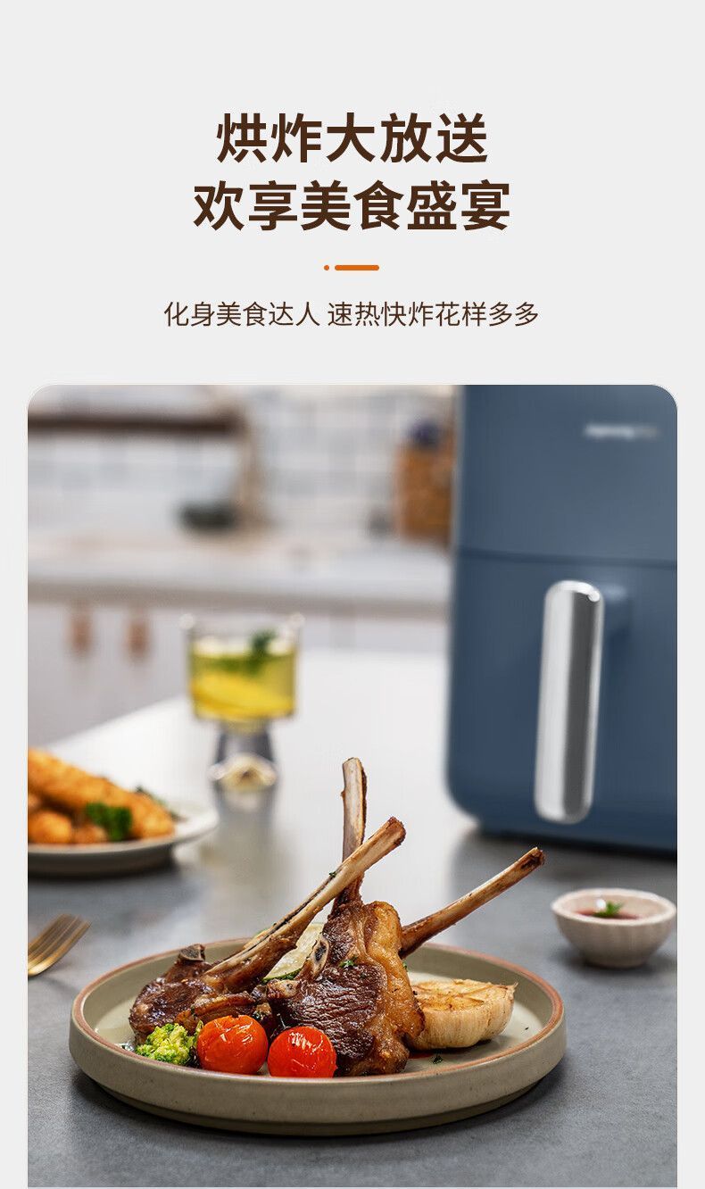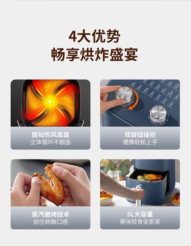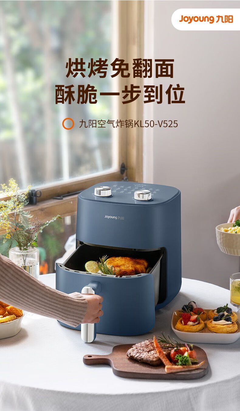 商品名称:(巨邦佑)T+九阳 JOYOUNG空气炸锅5升大容量 双核热风循环不用翻面 蒸汽嫩烤 家用智能无油不粘电炸锅薯条机 KL50-V525