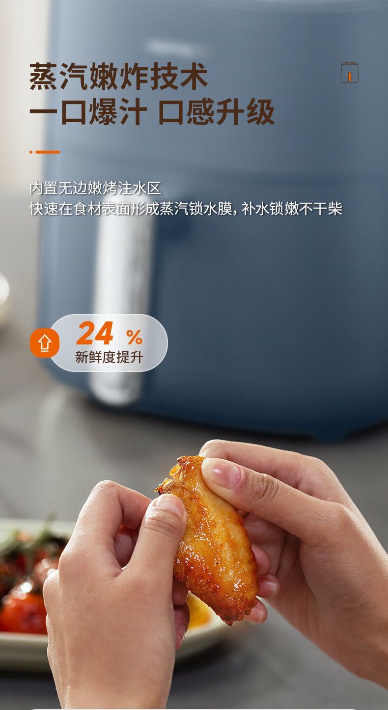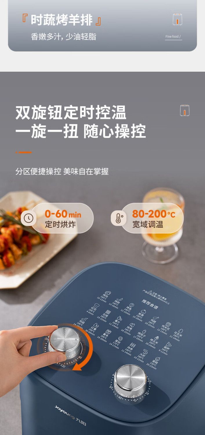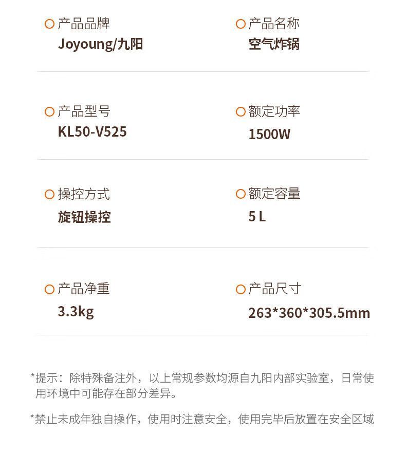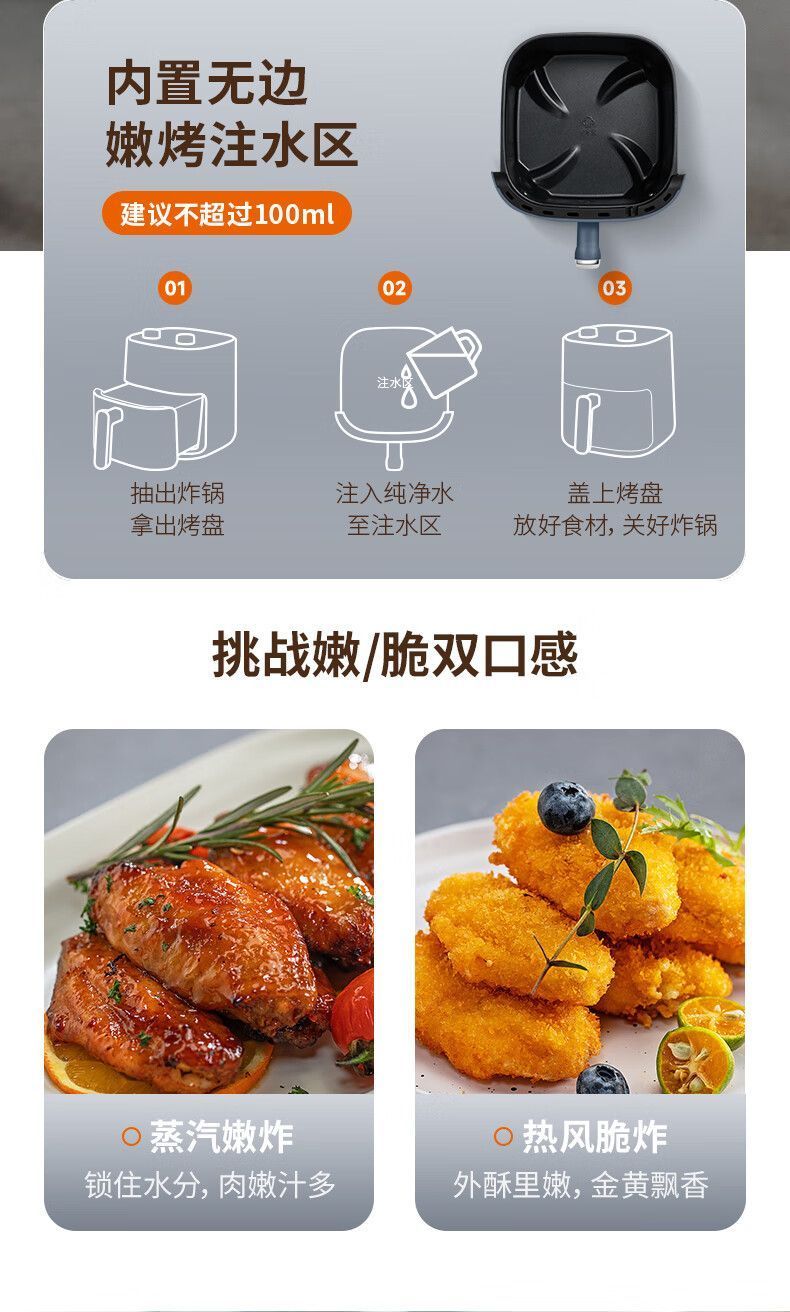 商品名称:(巨邦佑)T+九阳 JOYOUNG空气炸锅5升大容量 双核热风循环不用翻面 蒸汽嫩烤 家用智能无油不粘电炸锅薯条机 KL50-V525