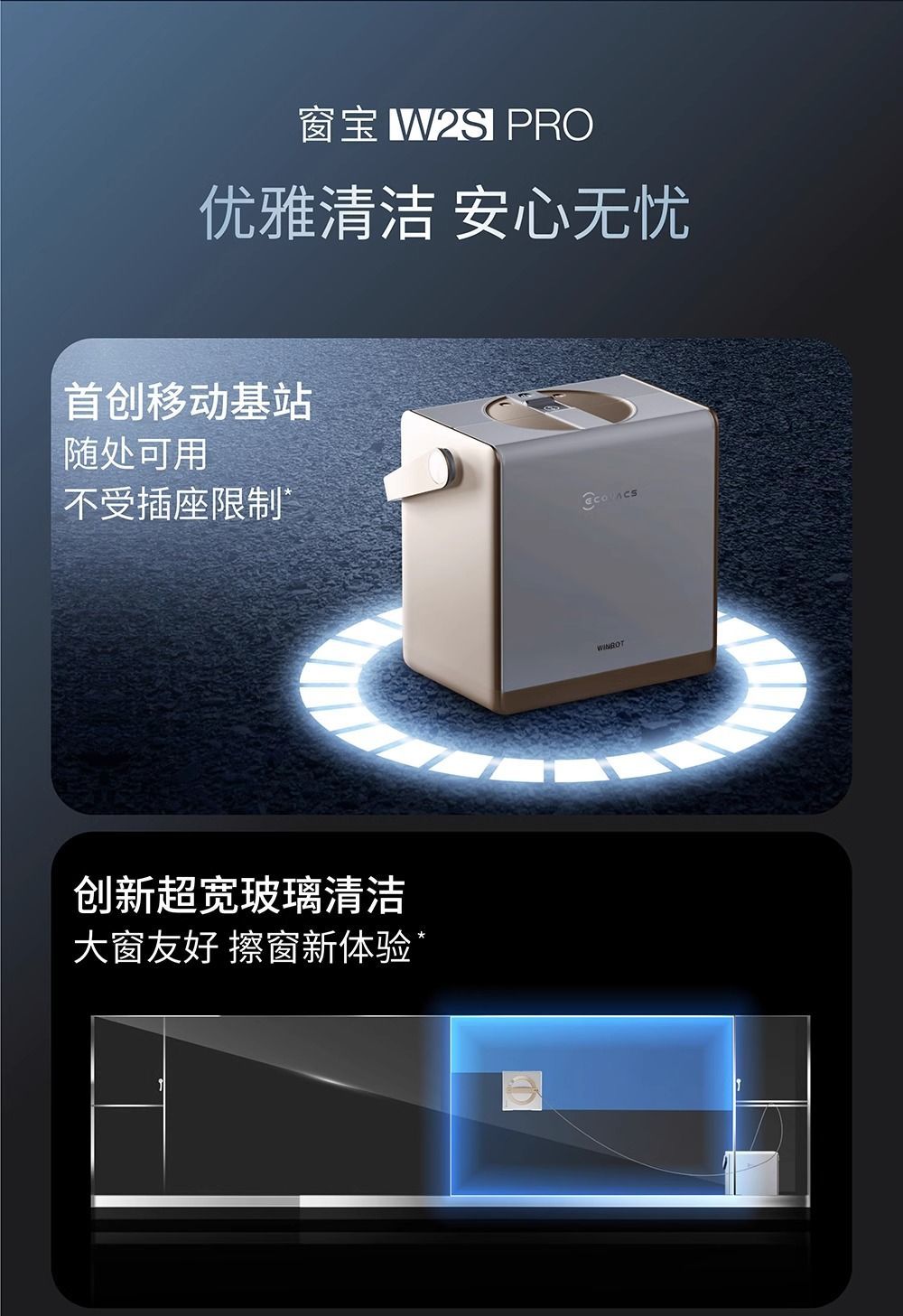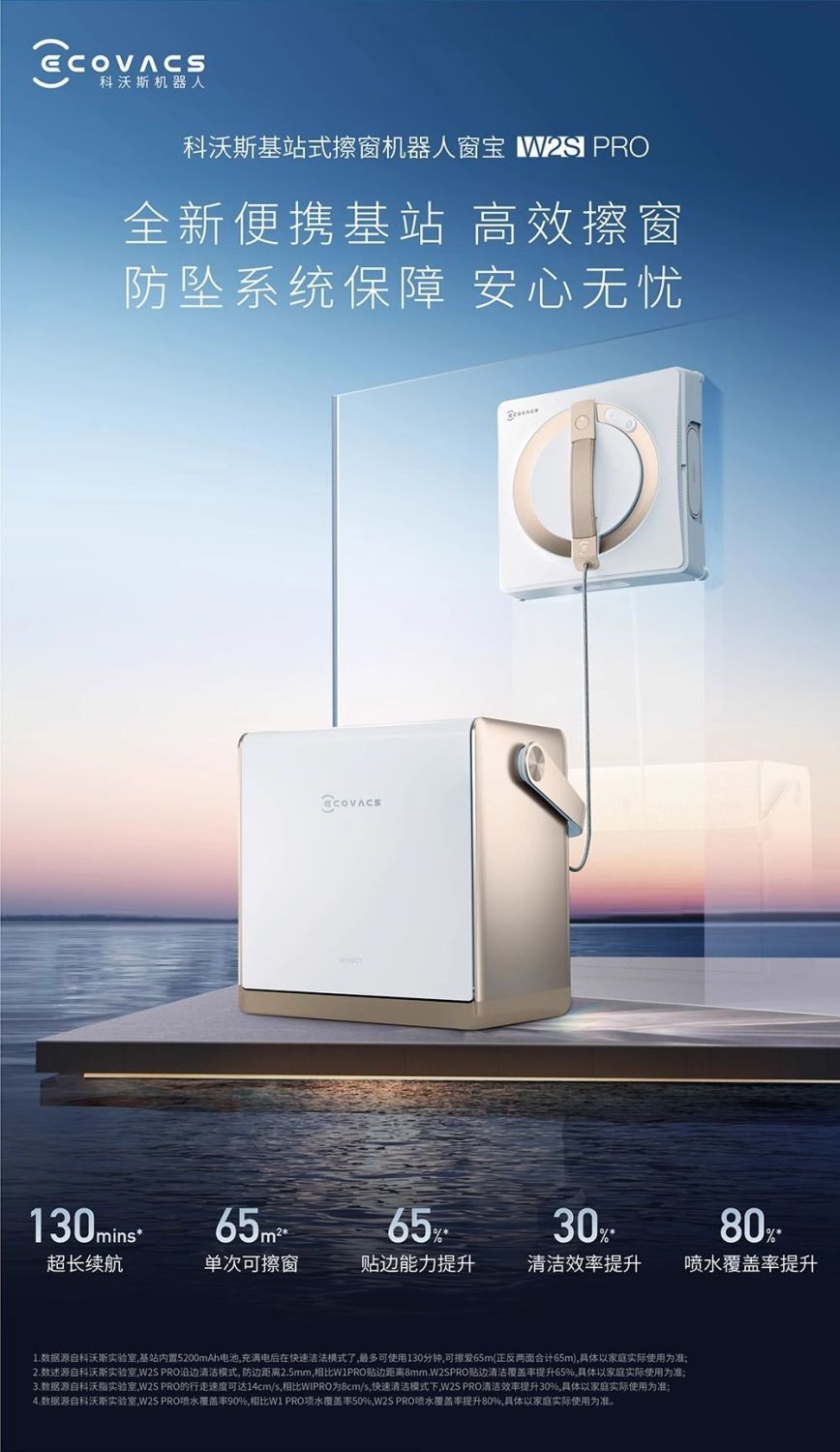 (巨邦佑)T+科沃斯(ECOVACS)擦窗机器人【全新升级版】W2S PRO多功能基站全自动家用擦窗擦玻璃神器高层户外擦窗
