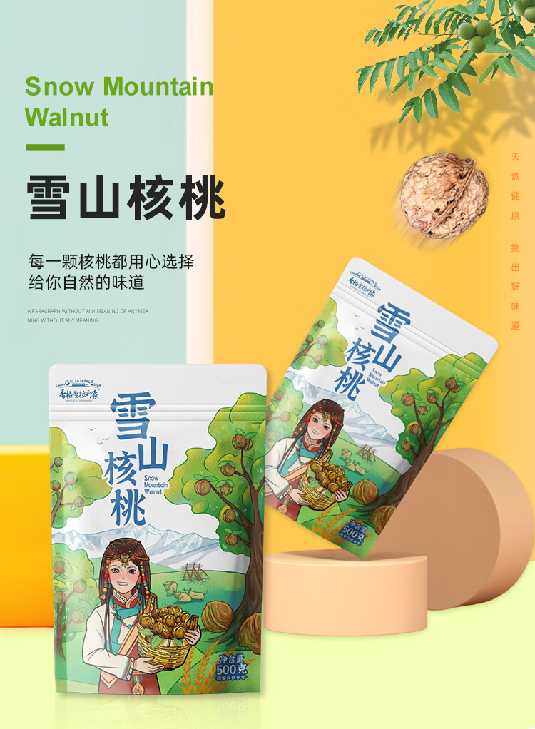 商品名称:(巨邦佑)BJ+香格里拉印象雪山核桃500g*5 干果开袋即食