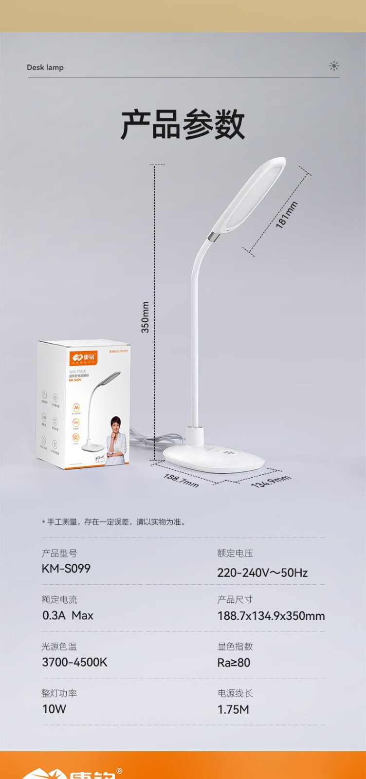 商品名称:(巨邦佑)R+康铭台灯KM-S099led学生儿童学习护眼专用减蓝光宿舍书房寝室读写灯 国AA级+无极调光