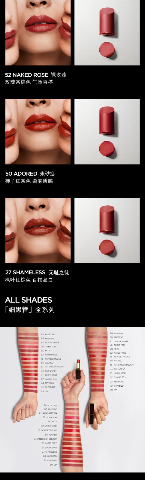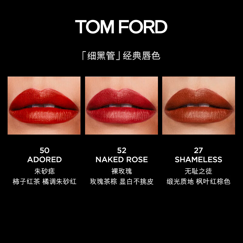 商品名称:(超运·禾贸)汤姆福特黑金细管口红#52玫瑰茶棕色(MY) 丝缎哑光裸玫瑰 化妆品