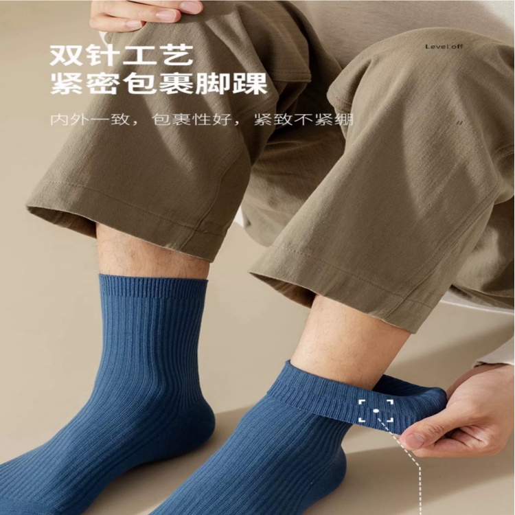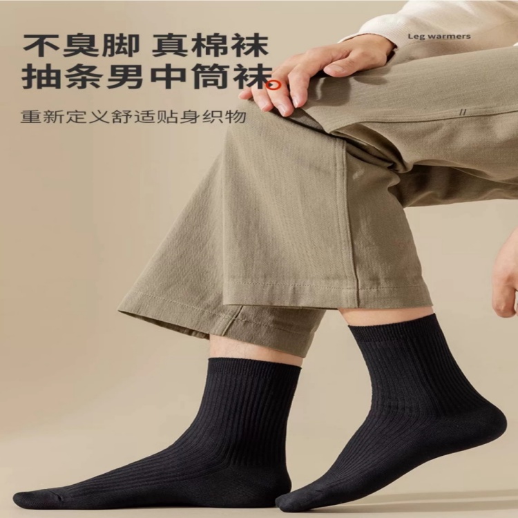(巨邦佑)BJ+真维斯男士抗菌纯棉中筒袜4双(颜色随机) 含棉量82%平整光滑紧密包裹