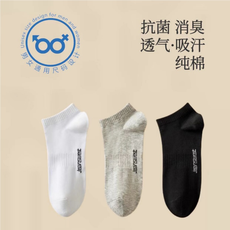 (巨邦佑)BJ+真维斯抗菌消臭低筒四季通码袜4双(黑白灰颜色随机) 含棉量76.5%抗菌透气