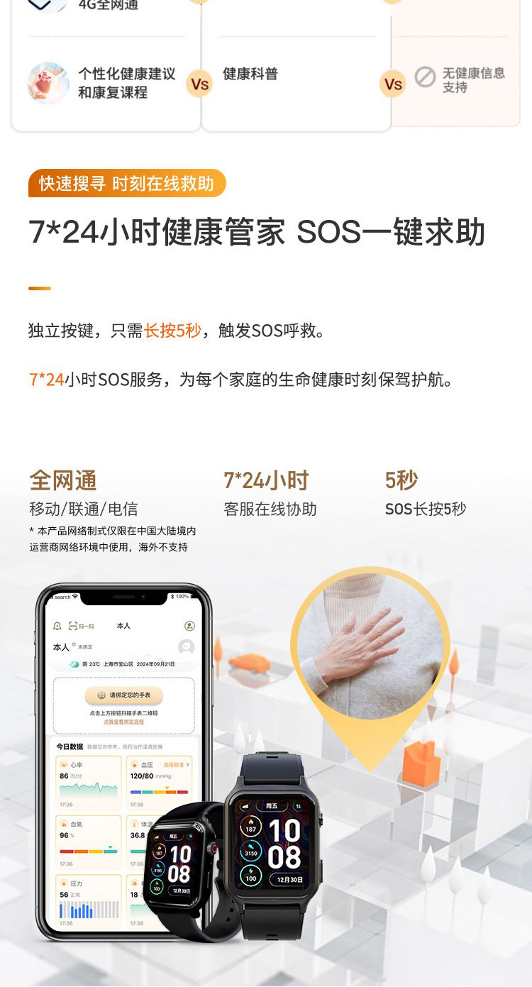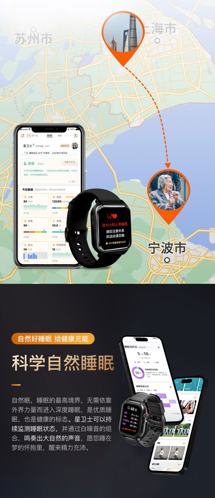 商品名称:(巨邦佑)BJ+星卫士IP67玛瑙黑 防水星卫士星18智能健康检测监测 预警手表老年中年人无创血糖血压血氧心率睡眠体温运动(一年标准服务版)