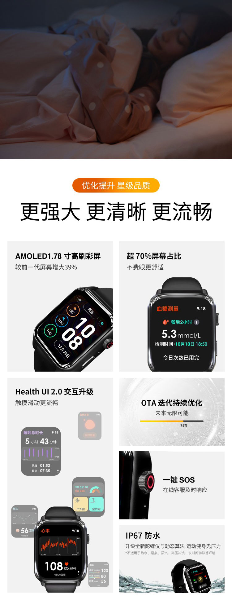 (巨邦佑)BJ+星卫士IP67玛瑙黑 防水星卫士星18智能健康检测监测 预警手表老年中年人无创血糖血压血氧心率睡眠体温运动(一年标准服务版)