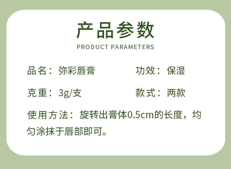 商品名称:(巨邦佑)BH+弥彩唇部护理保湿滋润学生滋养防裂润唇膏补水去死皮水润修护防干裂 弥彩丰润保湿唇膏