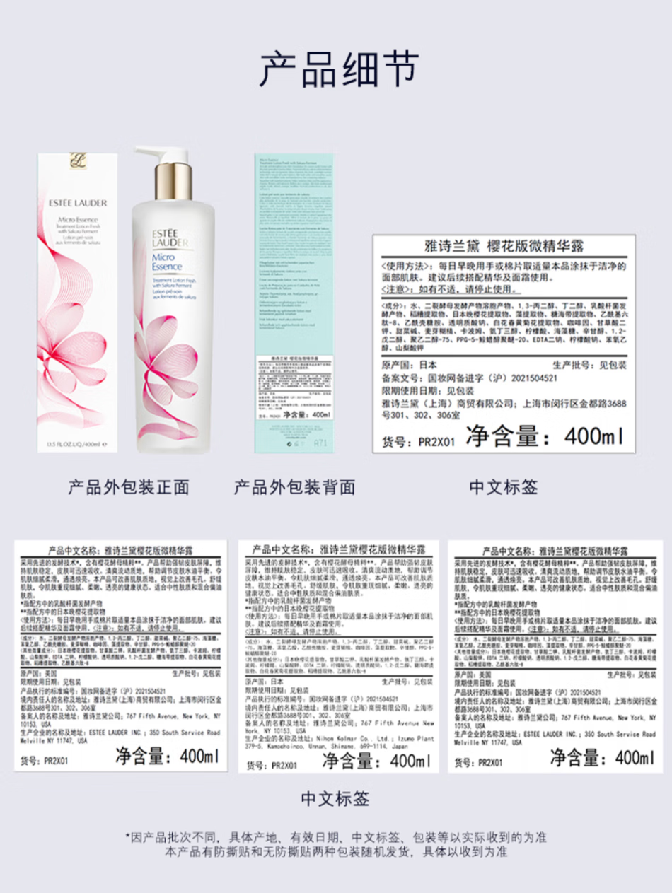 商品名称:(超运·禾贸)雅诗兰黛樱花微精华露400ml 精华液修护化妆品