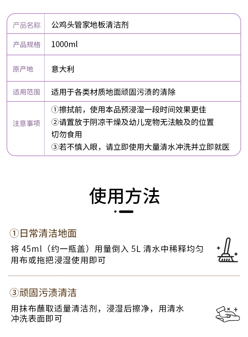 商品名称:(巨邦佑)BJ+公鸡头管家地板清洁剂1000ml 瓷砖清洗速干神器家用地砖面擦地专用拖地液