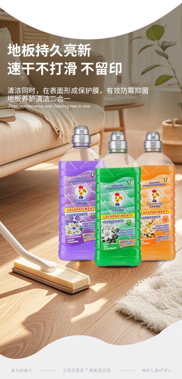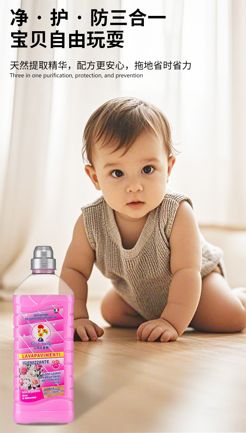 (巨邦佑)BJ+公鸡头管家地板清洁剂1000ml 瓷砖清洗速干神器家用地砖面擦地专用拖地液