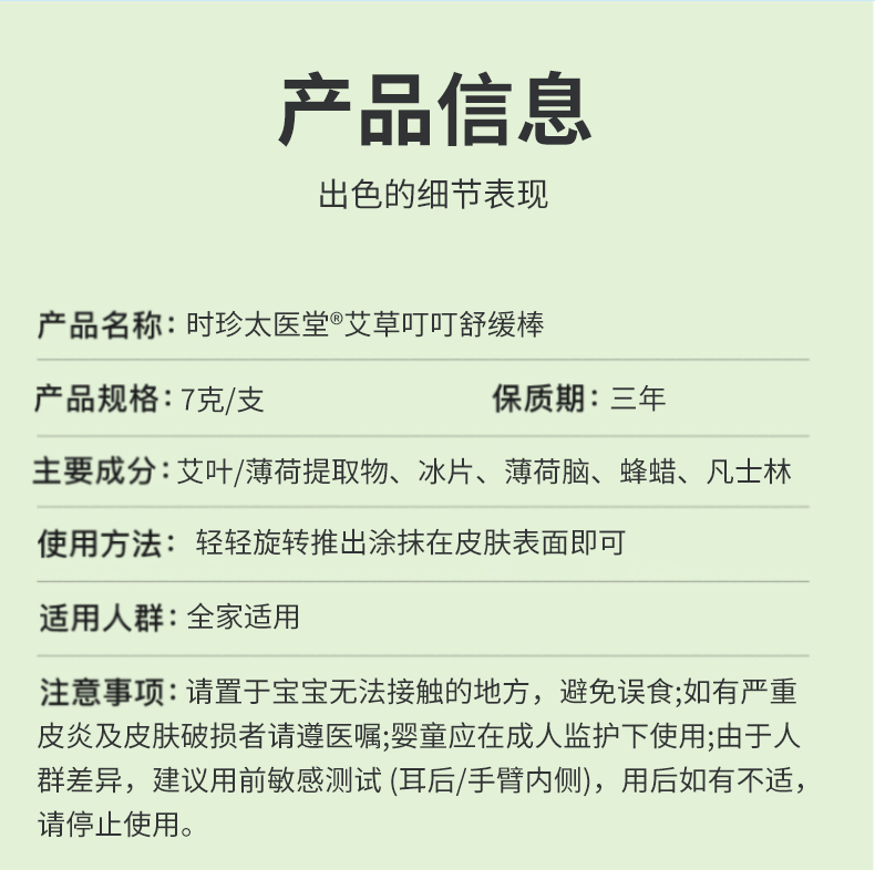商品名称:(巨邦佑)BJ+时珍太医堂艾草叮叮舒缓棒7G*2 婴儿专用宝宝舒缓棒儿童蚊子蚊虫叮咬止痒膏驱蚊