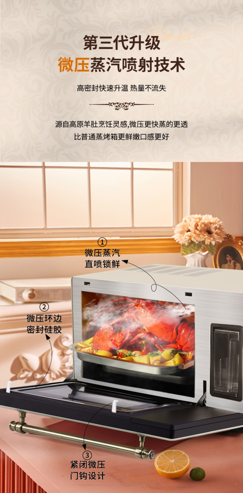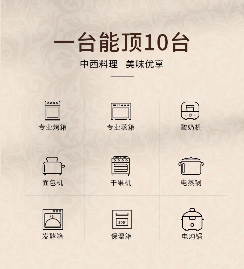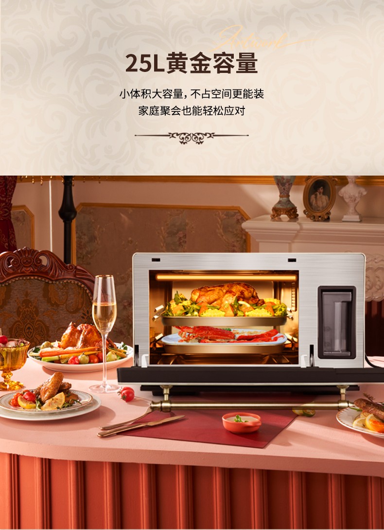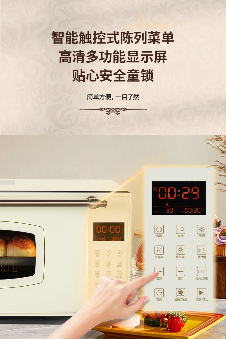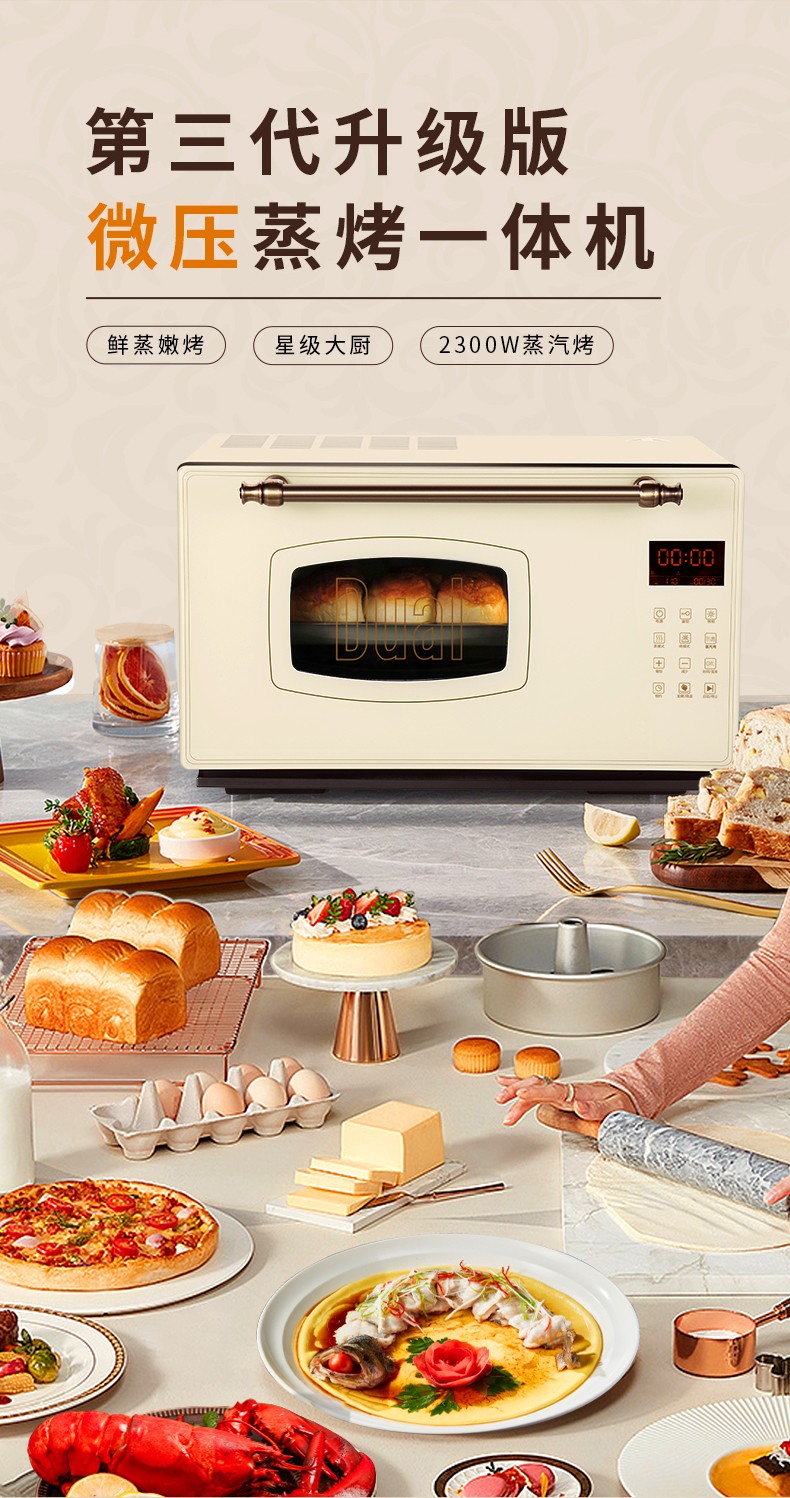 (世星阳光) 帝而Dual蒸烤一体机DIK17米白色 25L大容量 欧式复古